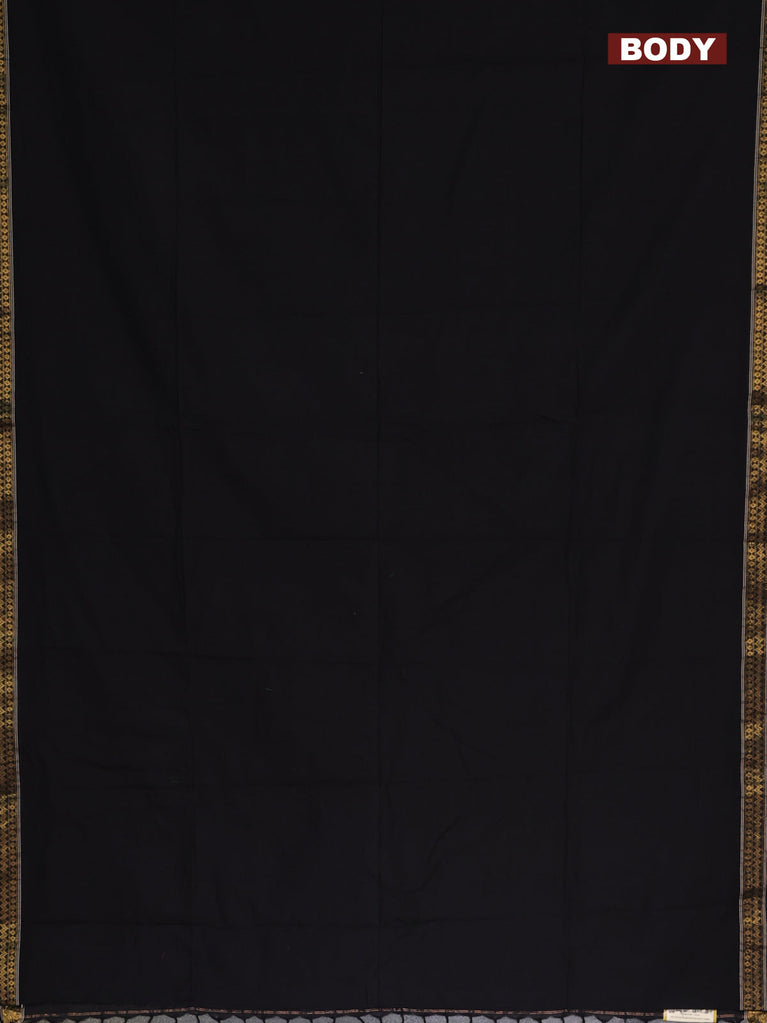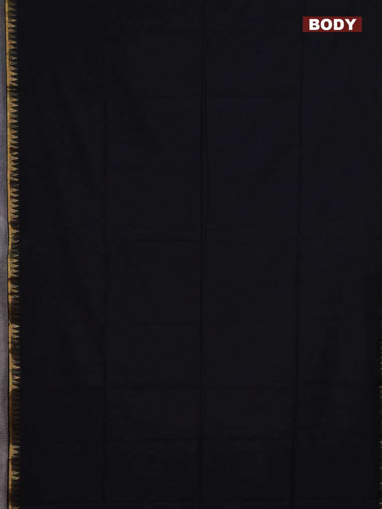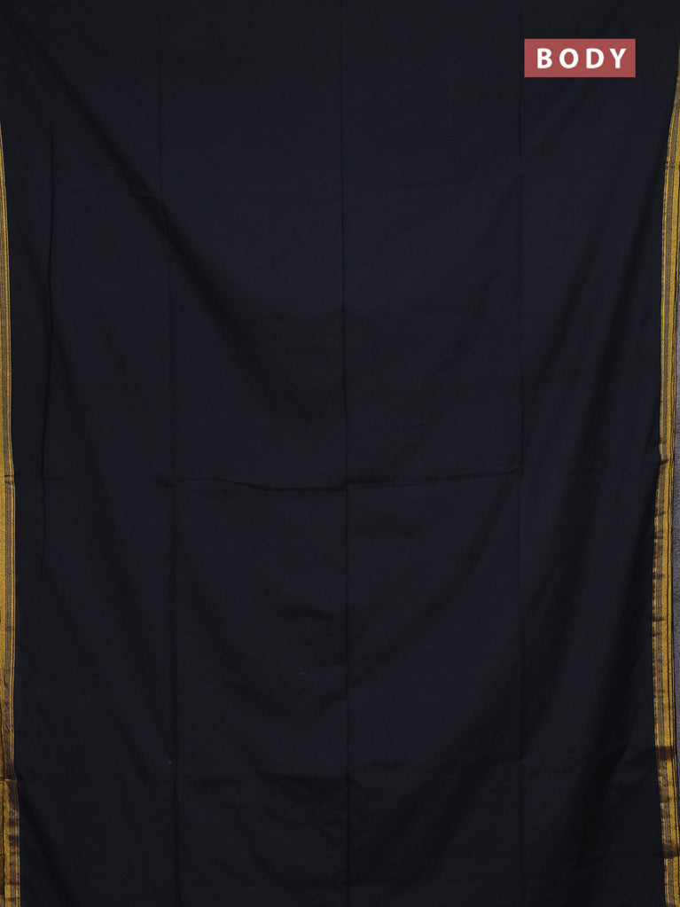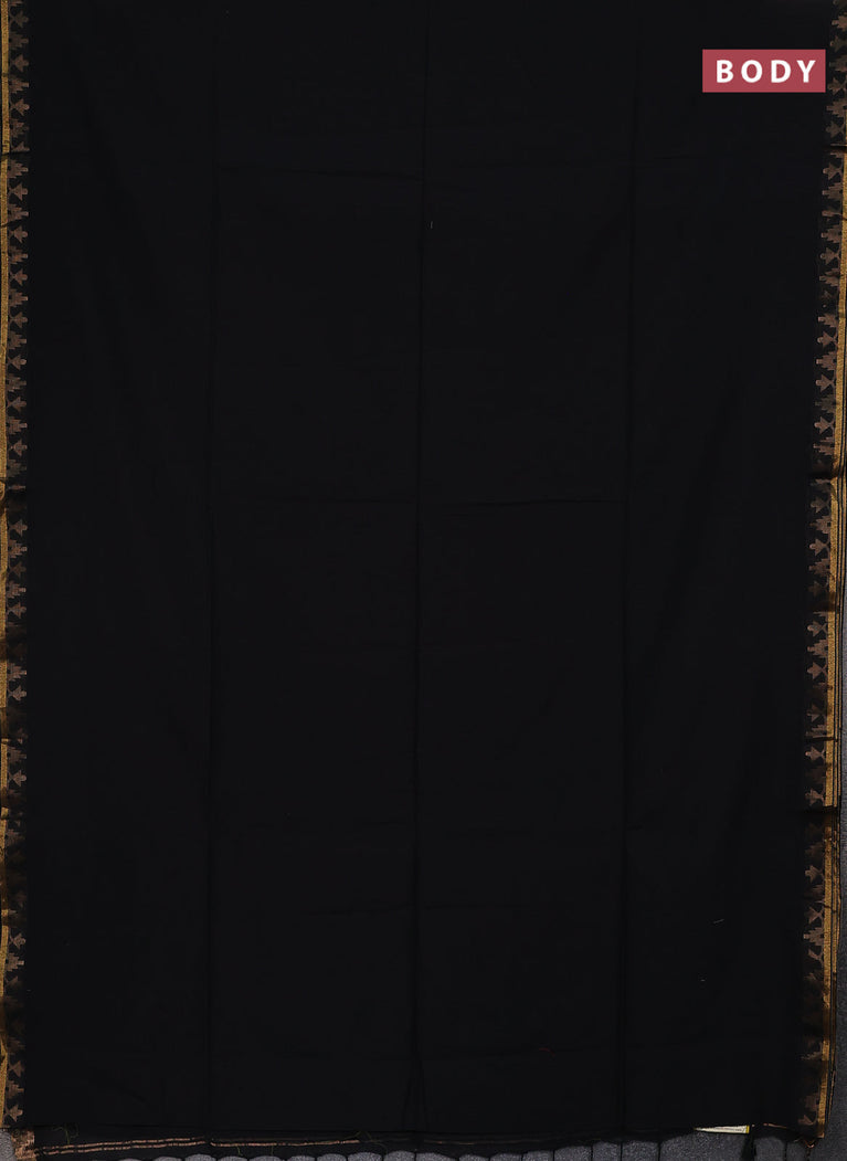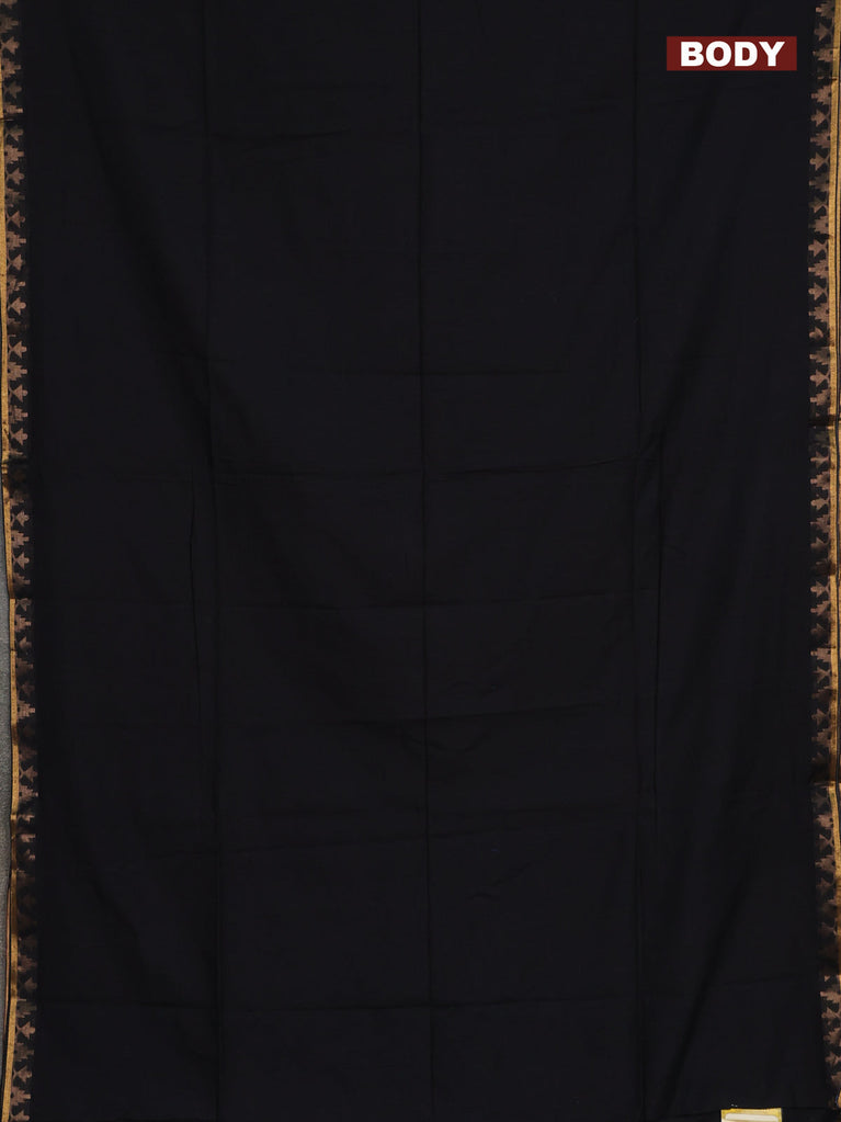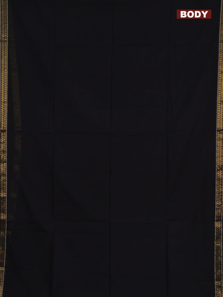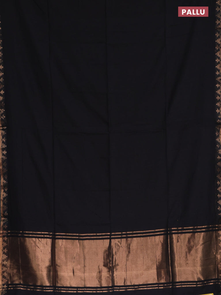 Bengal soft cotton saree black and mustard yellow with plain body and zari woven border