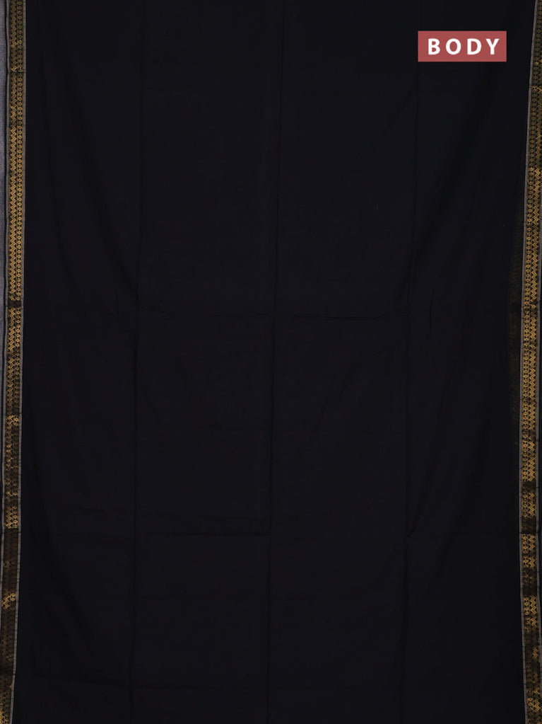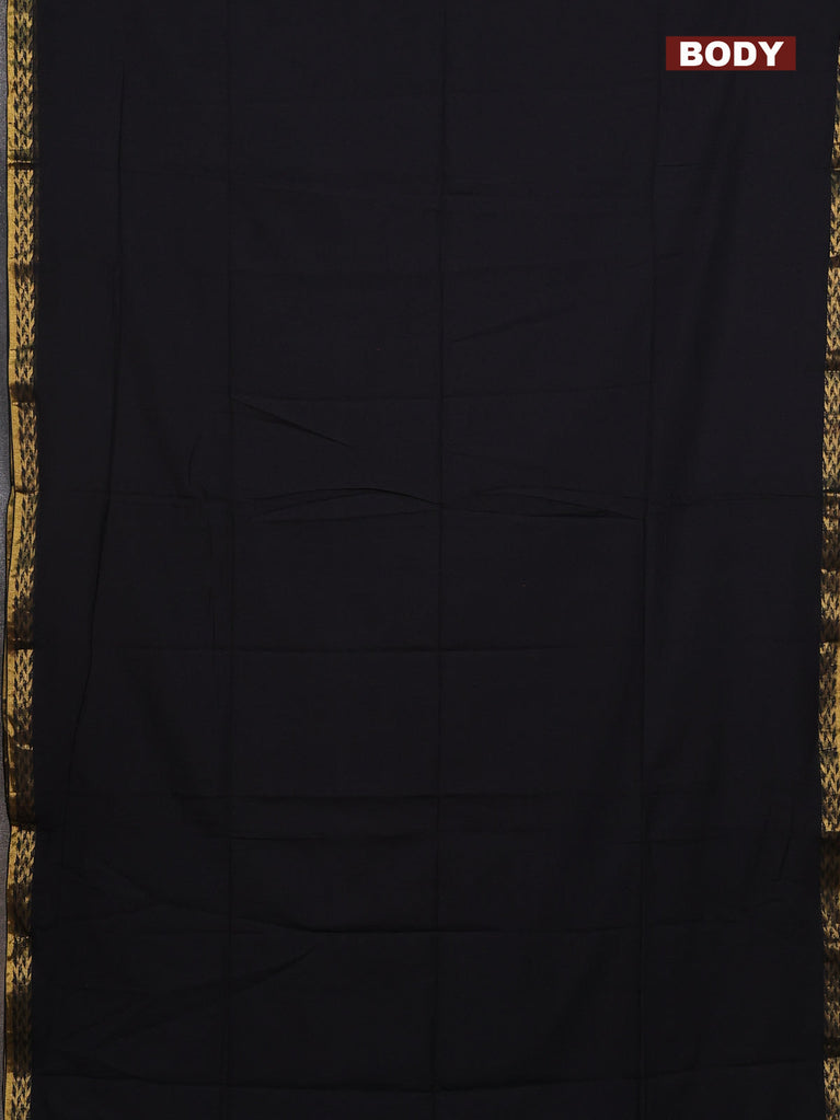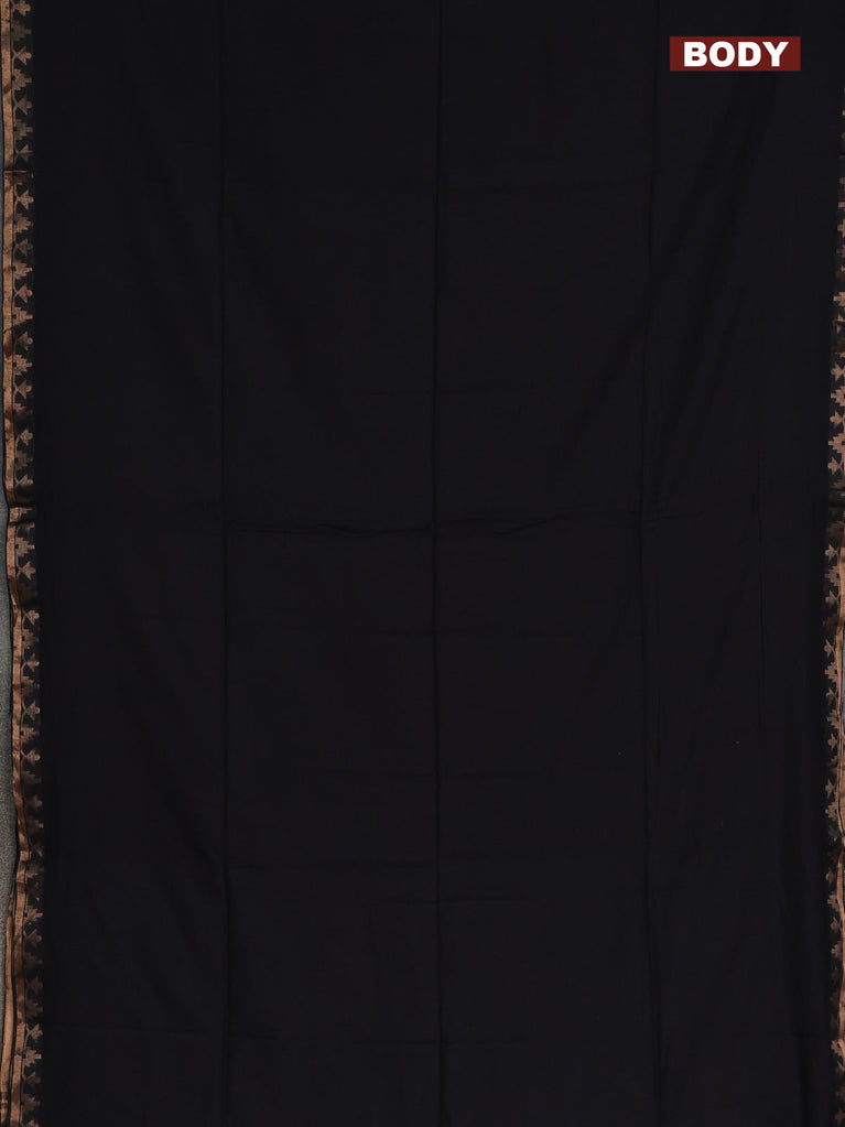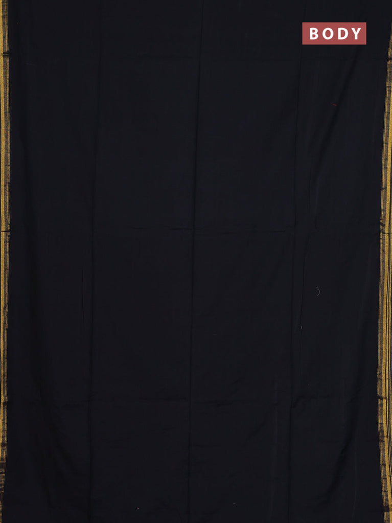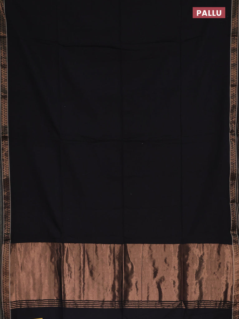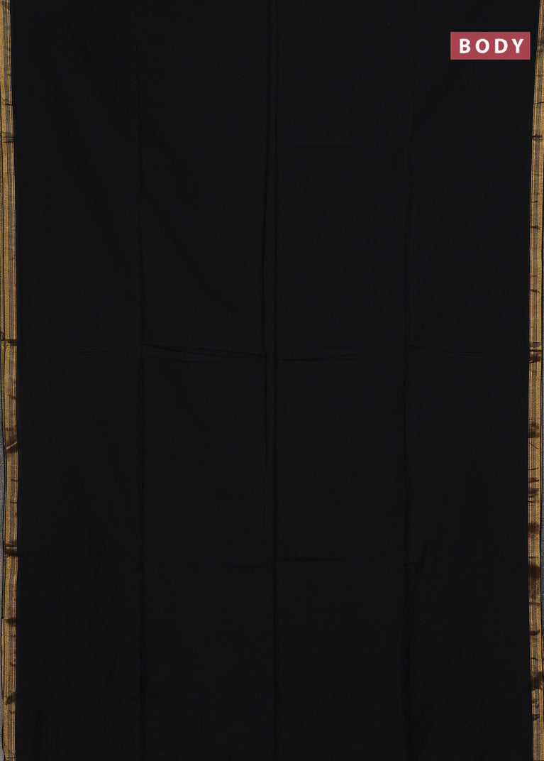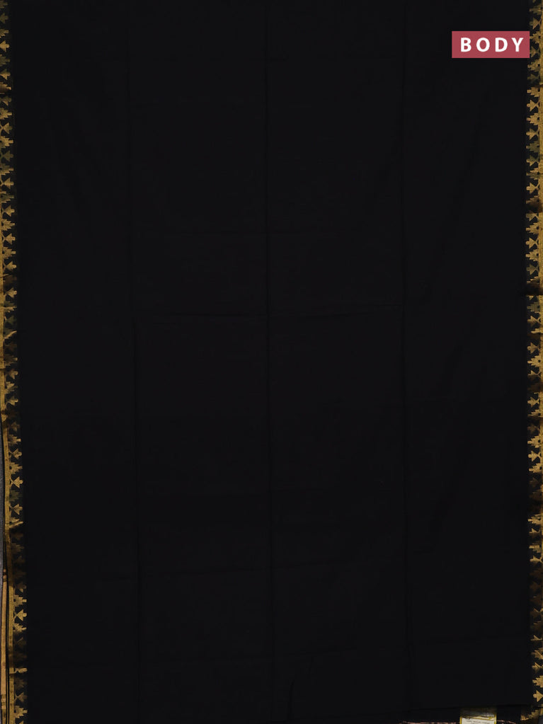 Bengal soft cotton saree black and mustard yellow with plain body and zari woven border