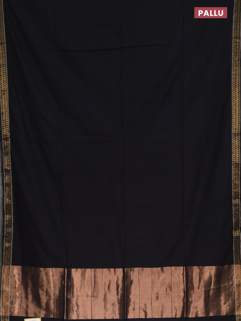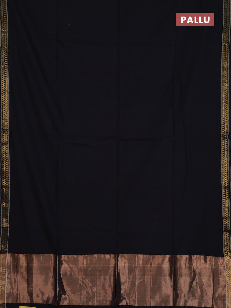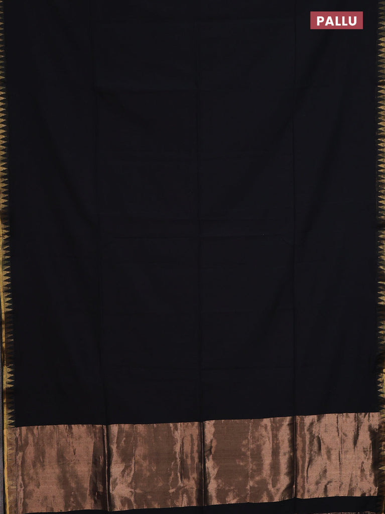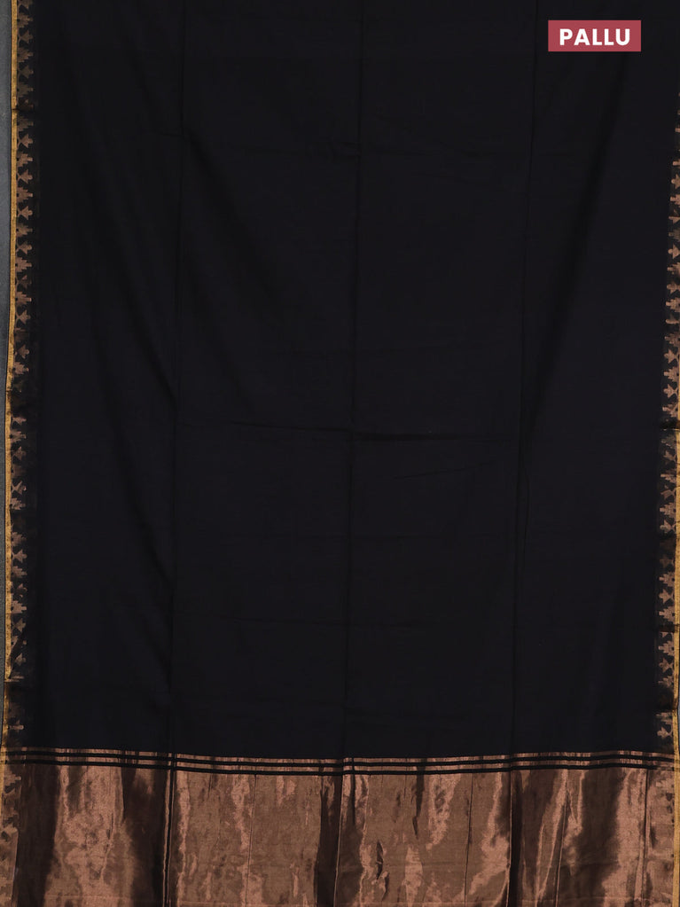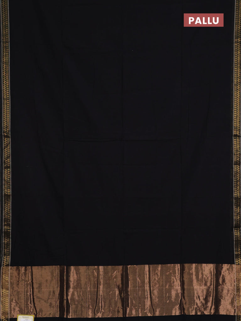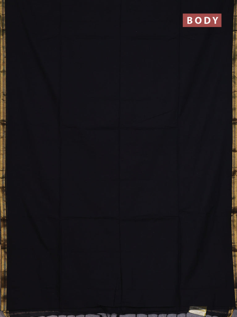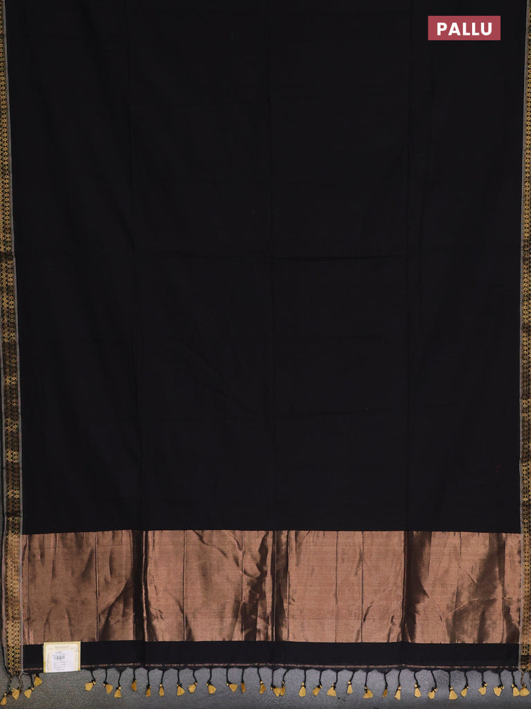 Bengal soft cotton saree black and mustard yellow with plain body and zari woven border