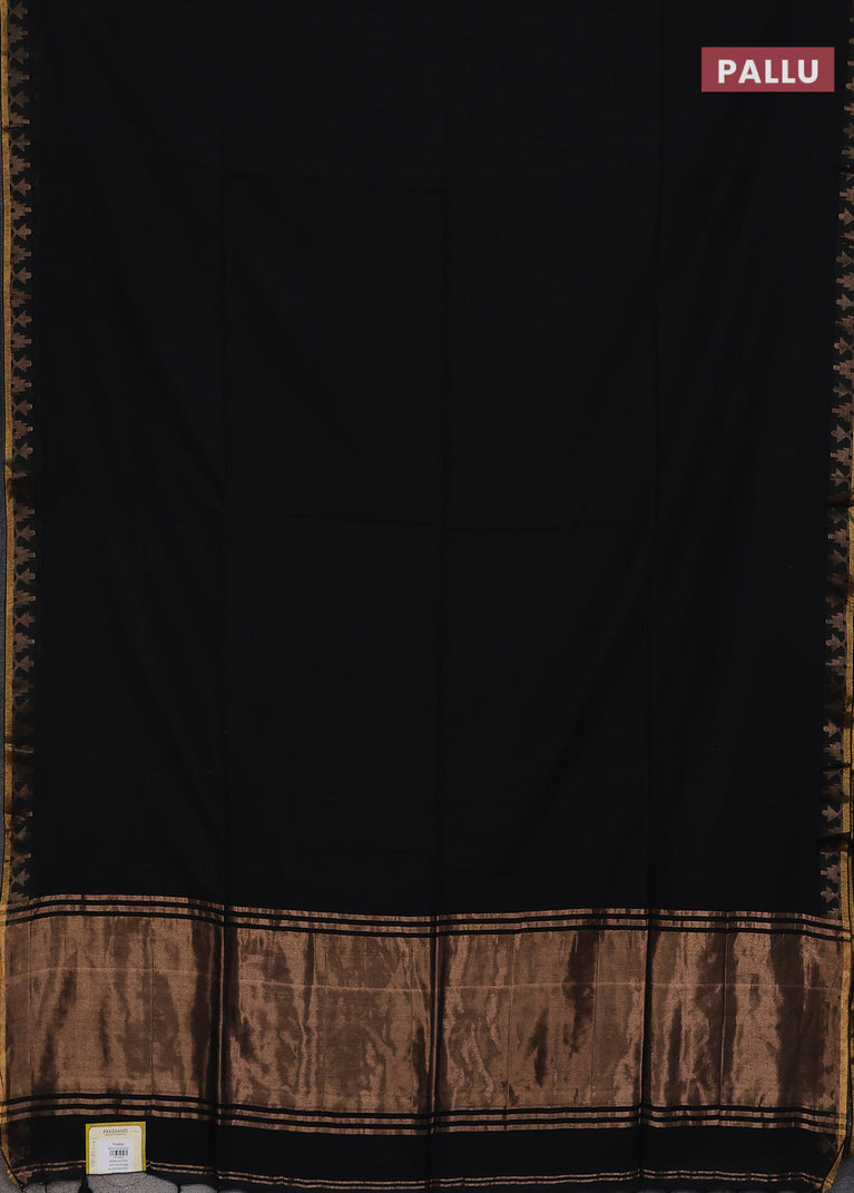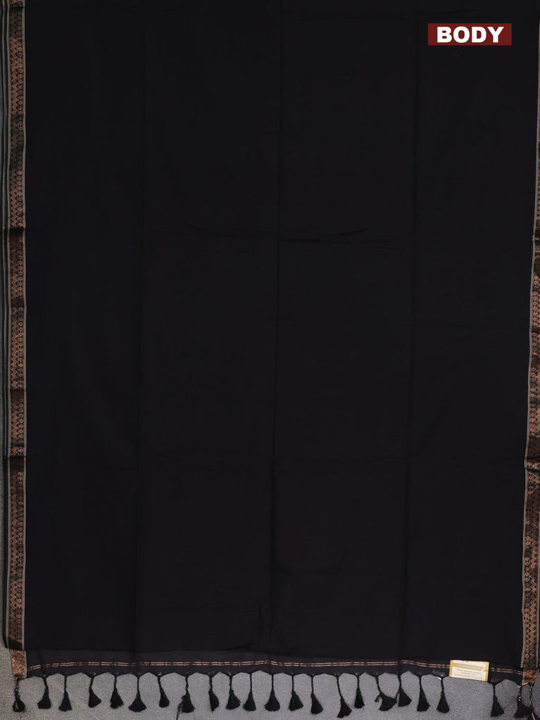 Bengal soft cotton saree black and maroon with plain body and zari woven border