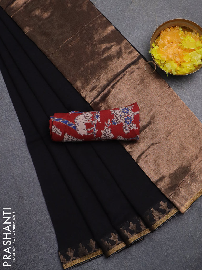 Bengal soft cotton saree black and red with plain body and zari woven border