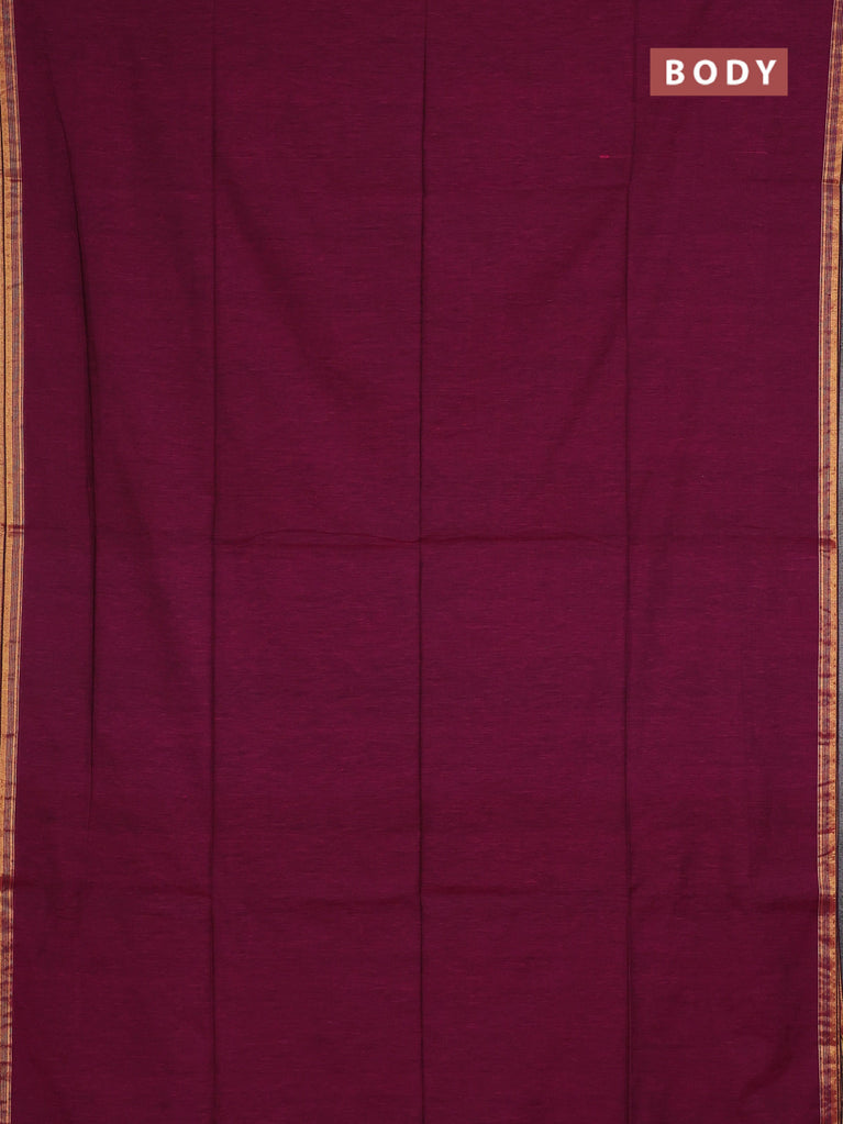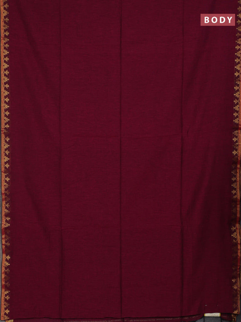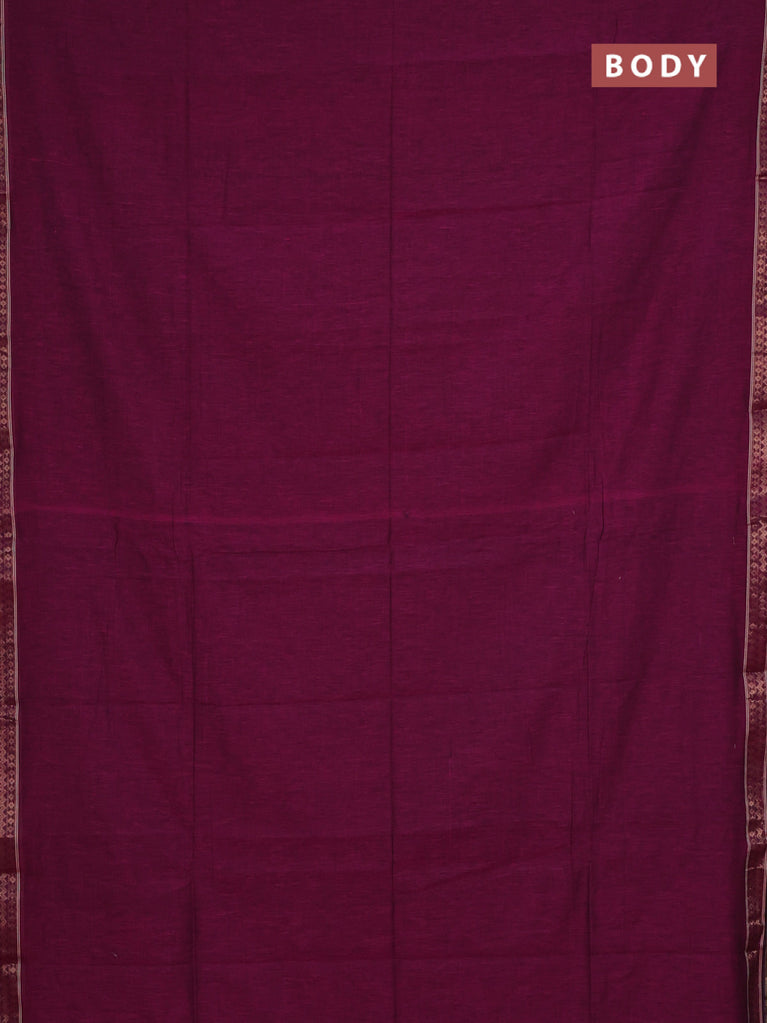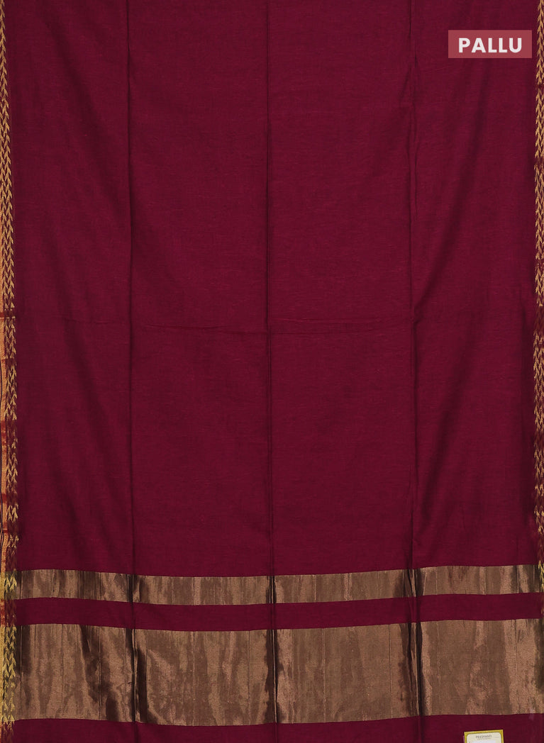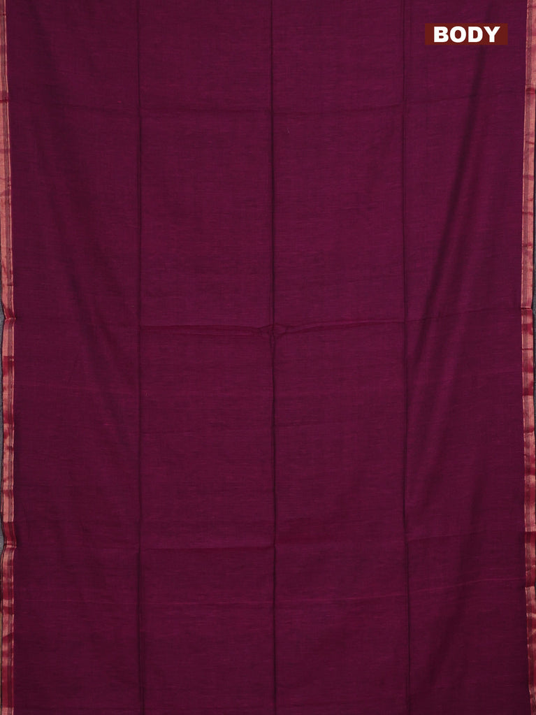 Bengal soft cotton saree dark magenta pink with plain body and zari woven border