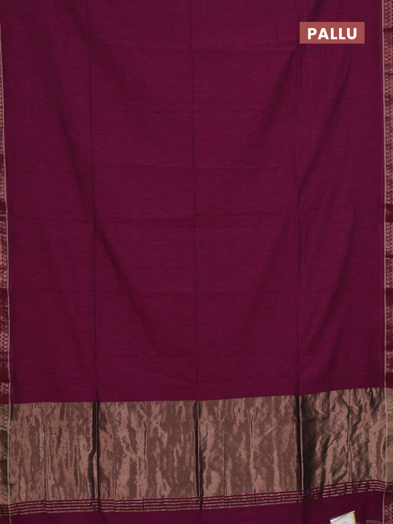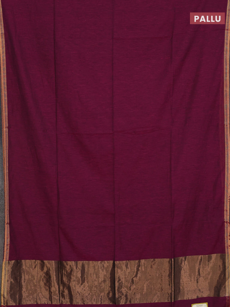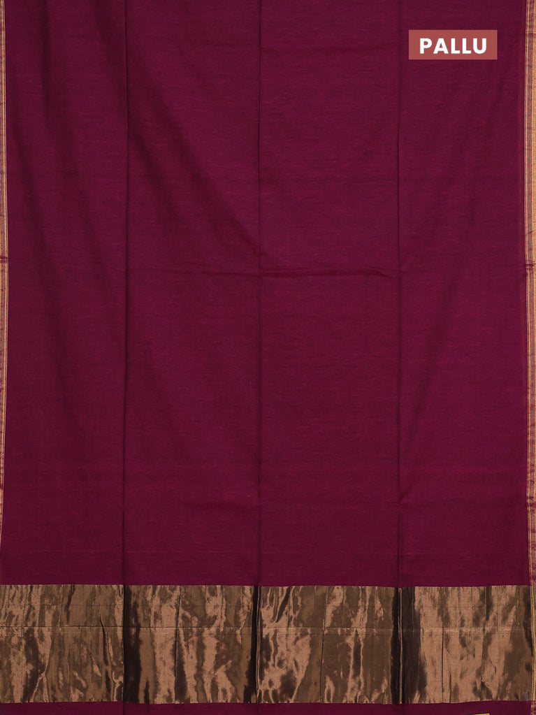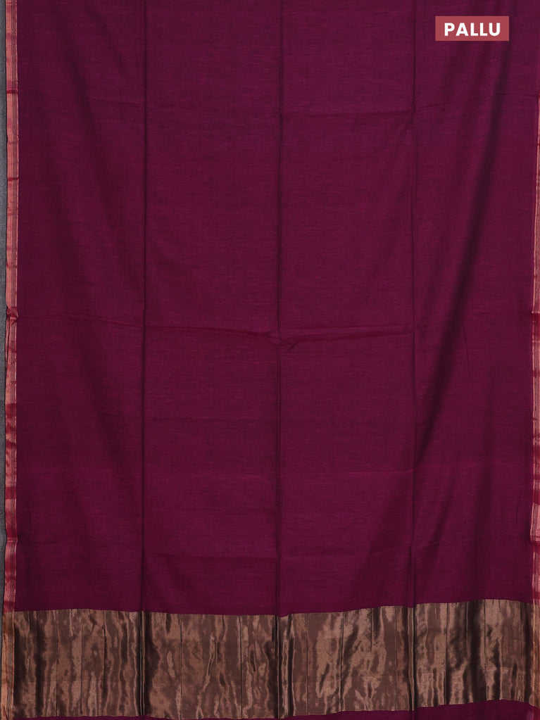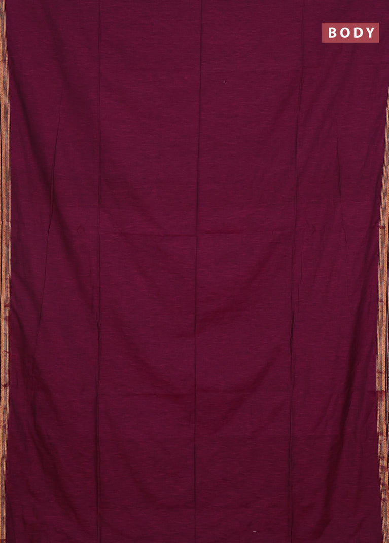 Bengal soft cotton saree dark magenta pink with plain body and zari woven border