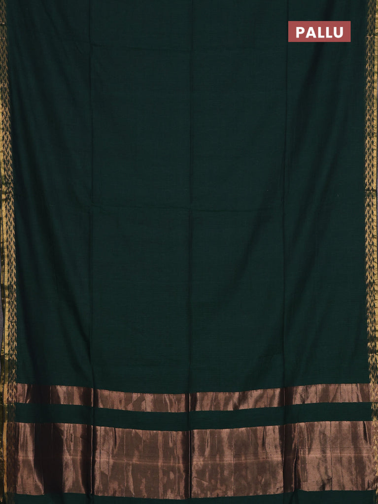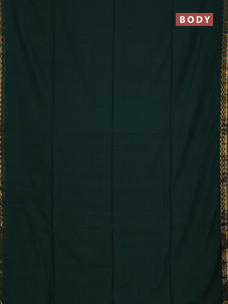 Bengal soft cotton saree dark green and magenta pink with plain body and zari woven border