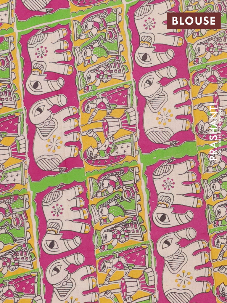 Bengal soft cotton saree dark magenta pink and yellow with plain body and zari woven border