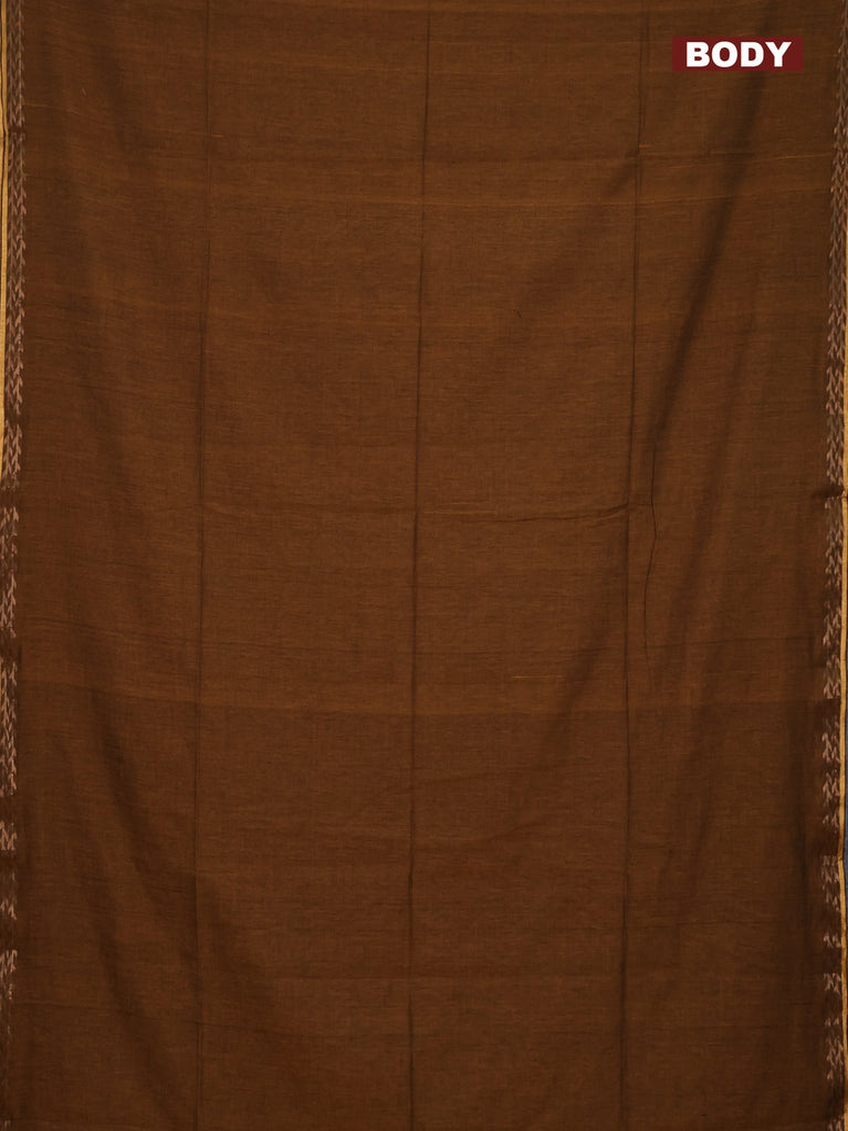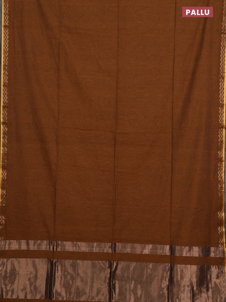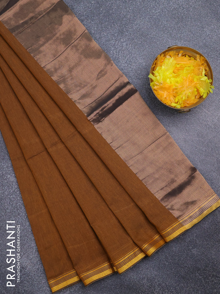 Bengal soft cotton saree dark mustard with plain body and zari woven piping border