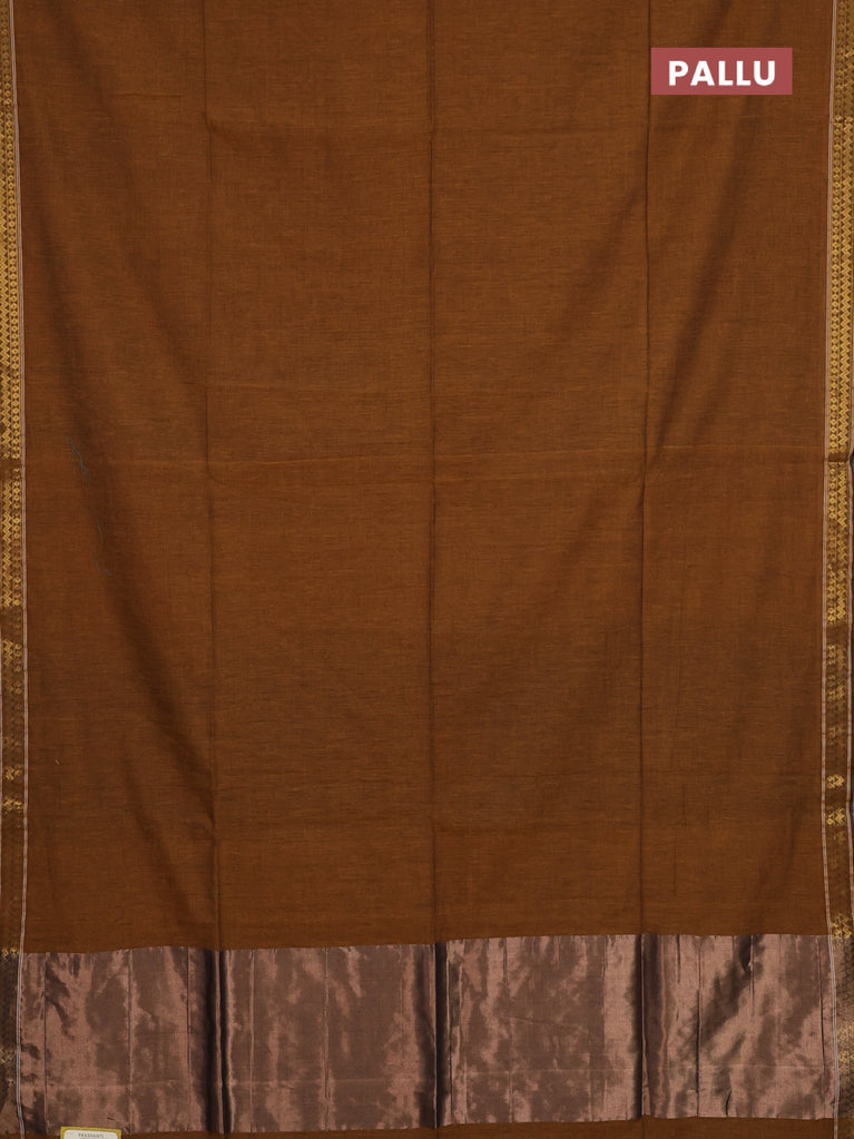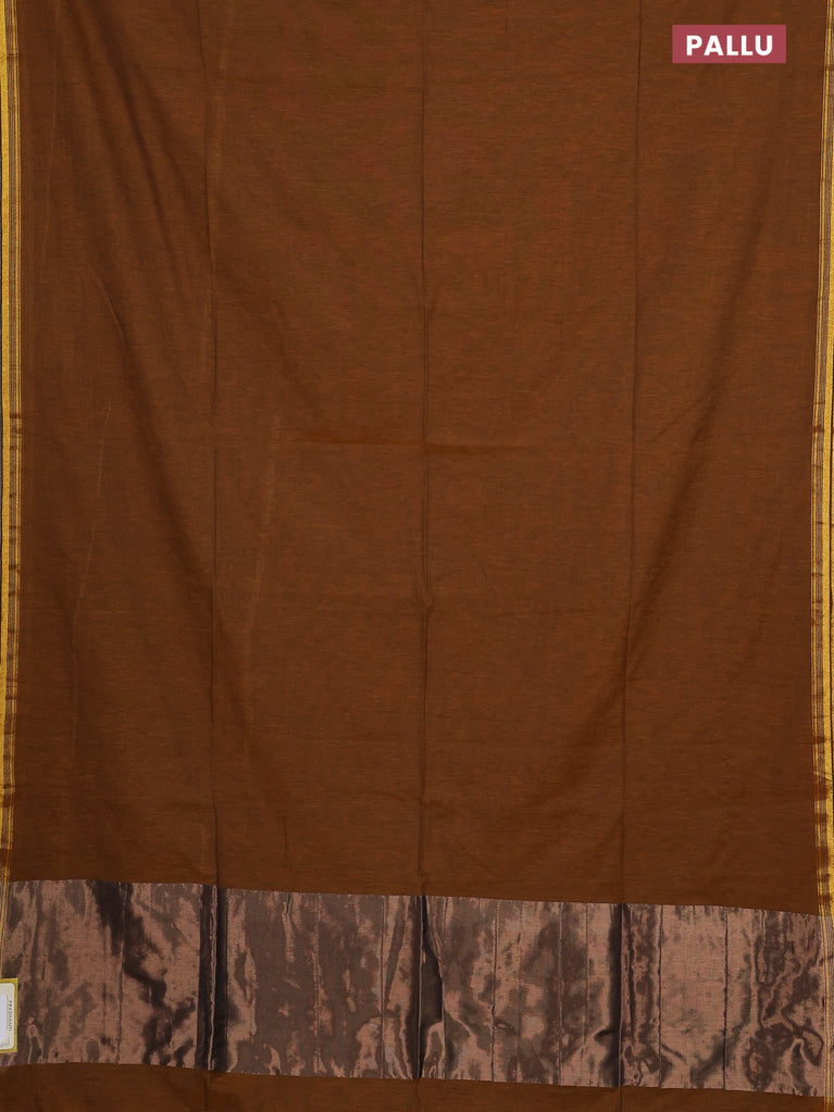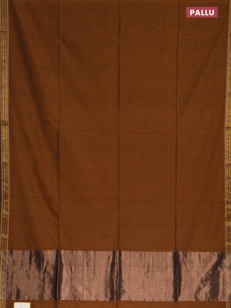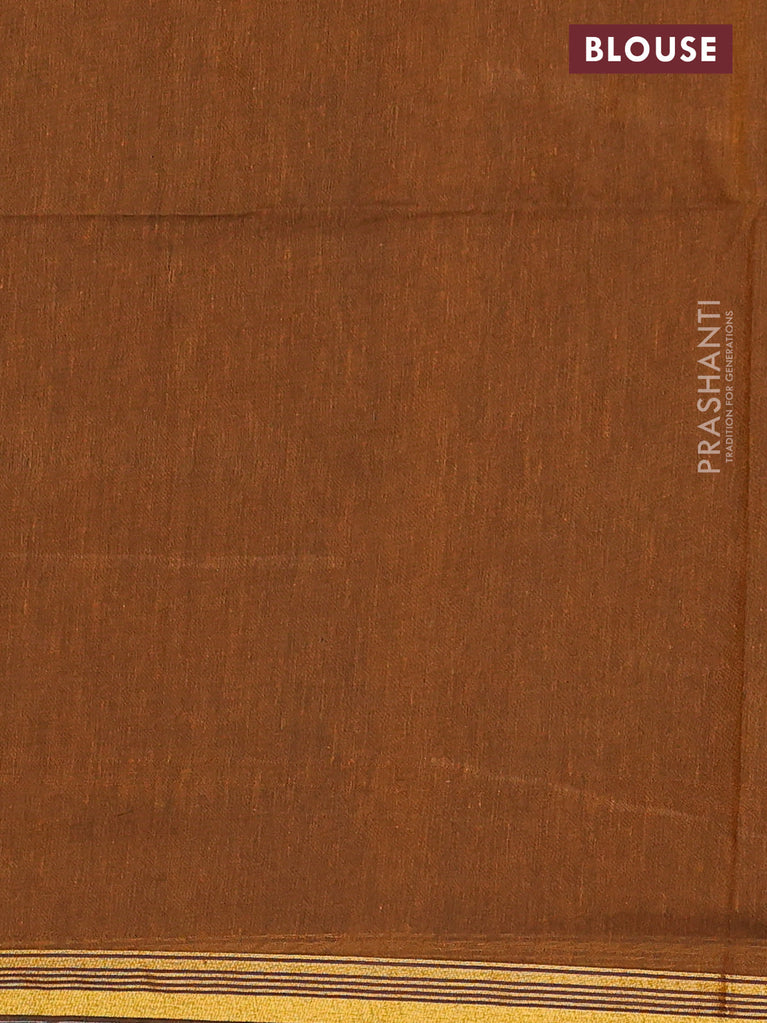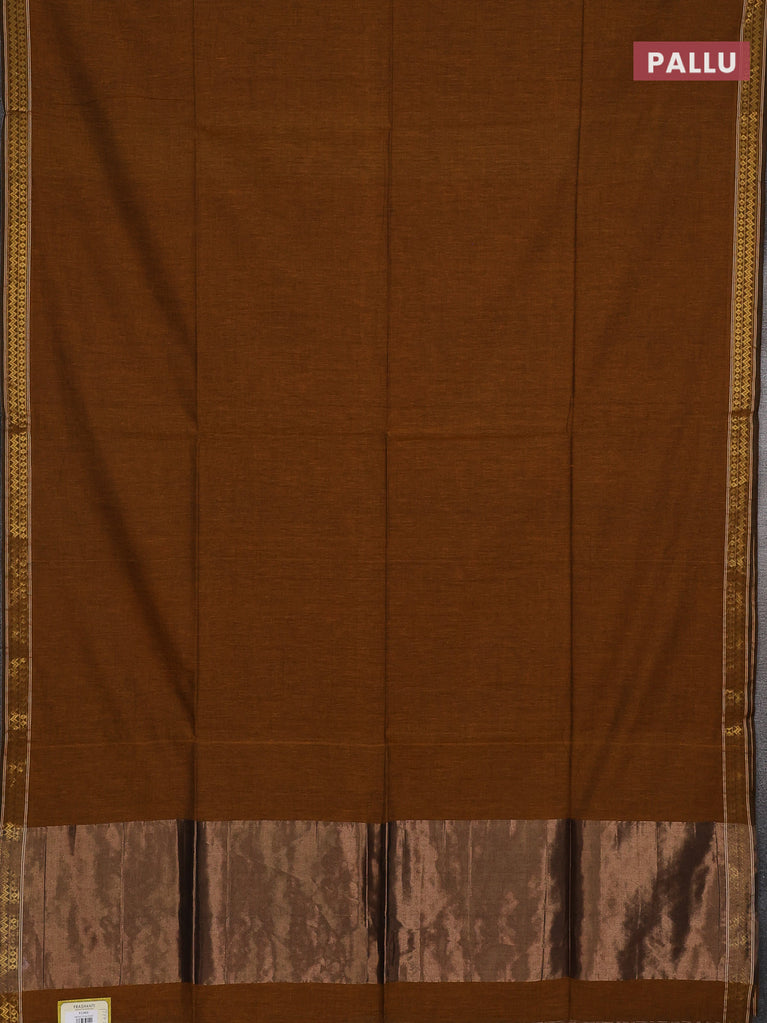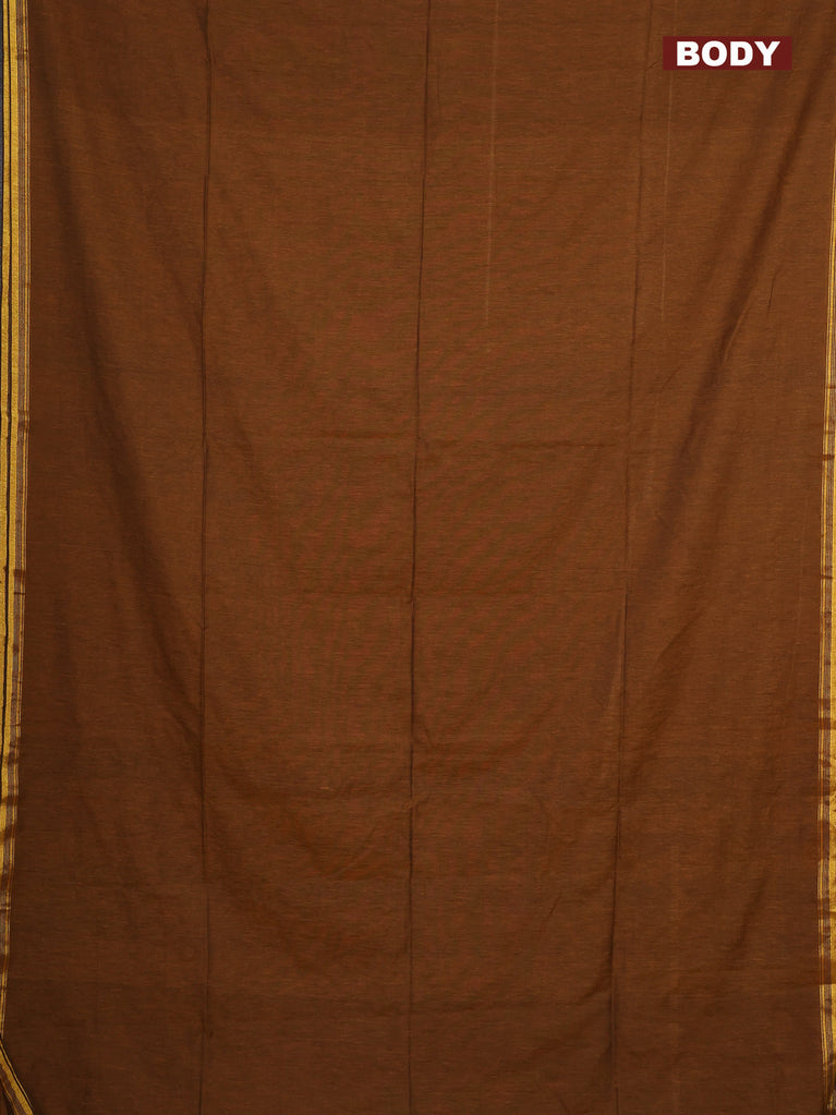 Bengal soft cotton saree dark msutard with plain body and temple design zari woven border