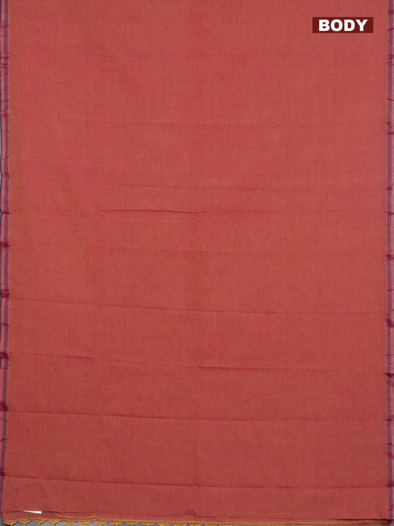 Bengal soft cotton saree dark mustard and deep maoon with plain body and zari woven border
