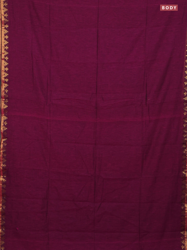 Bengal soft cotton saree dark magenta pink with plain body and zari woven border