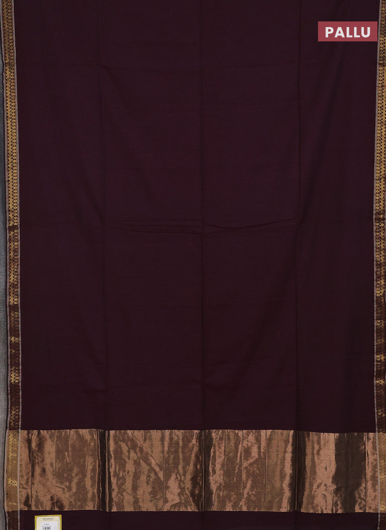 Bengal soft cotton saree deep maroon and blue with plain body and zari woven border