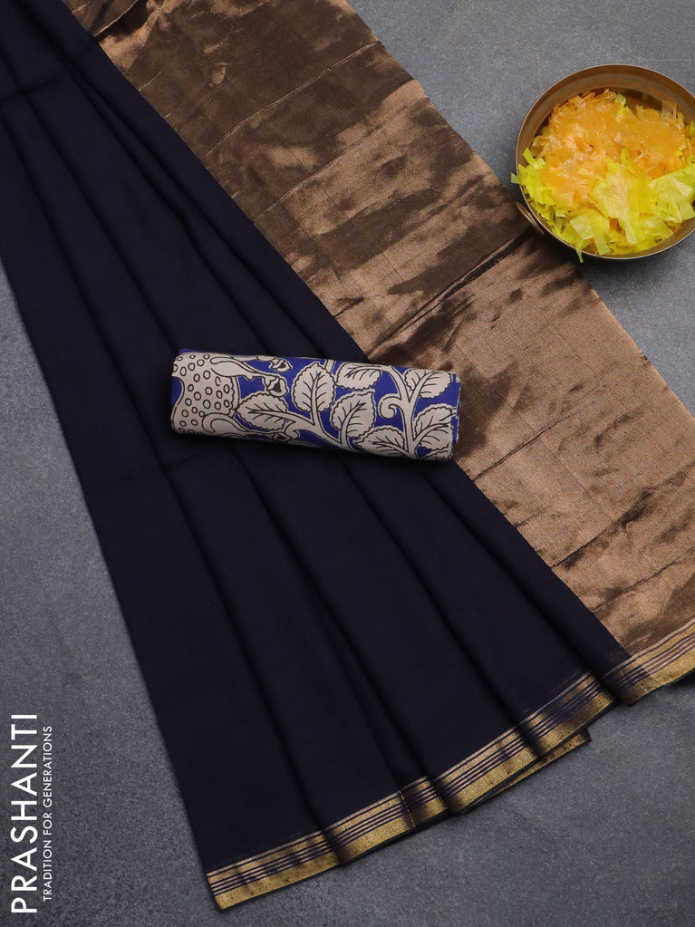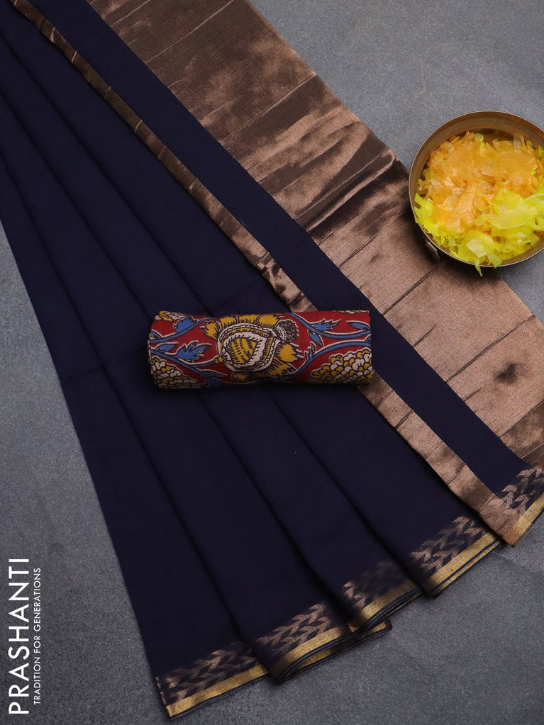 Bengal soft cotton saree deep navy blue and blue with plain body and zari woven border