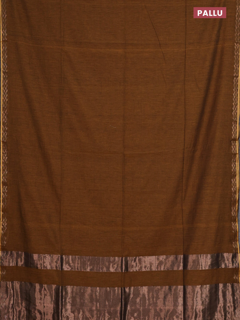 Bengal soft cotton saree dark mustard and blue with plain body and zari woven border