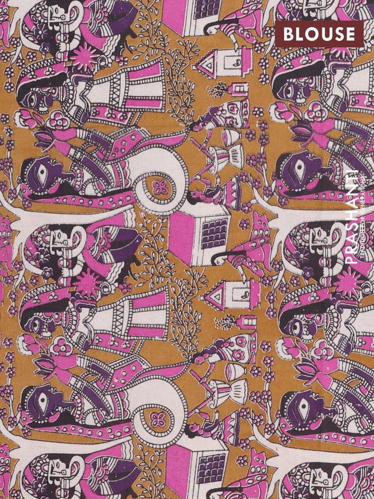 Bengal soft cotton saree dark mustard and violet shade with plain body and zari woven border