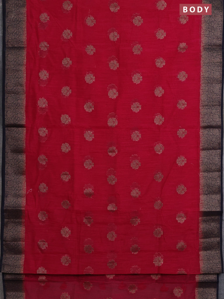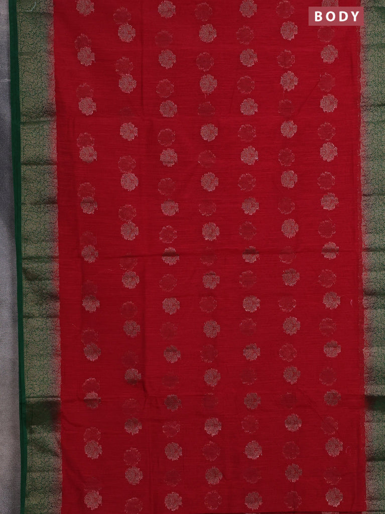 Banarasi semi matka saree red and green with thread & zari woven floral buttas and banarastyle border