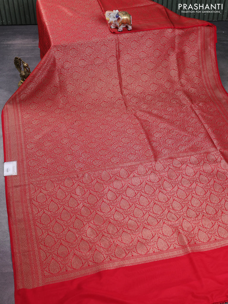 Banarasi semi silk saree red with allover thread & zari weaves and woven border