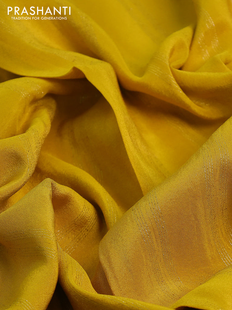 Banarasi tissue saree yellow with plain body and lace work border
