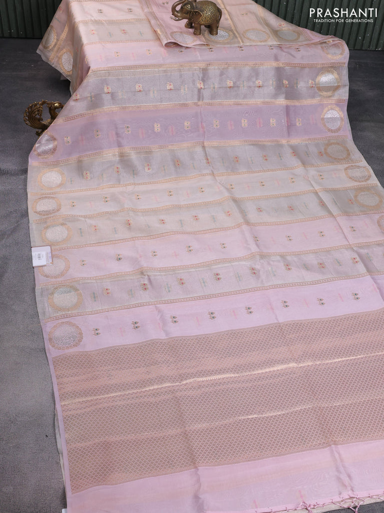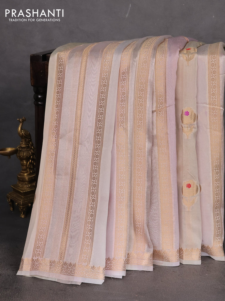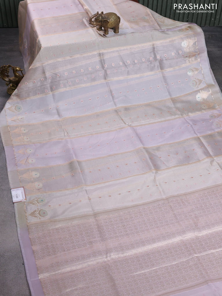 Banarasi tissue semi silk saree beige and pastel lavender with zari weaves & floral buttas and small zari woven border