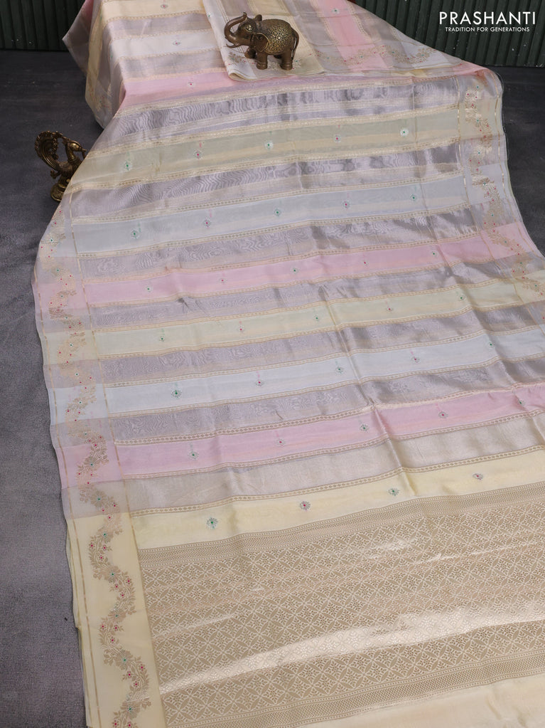 Banarasi tissue semi silk saree cream with zari weaves & buttas and zari woven border