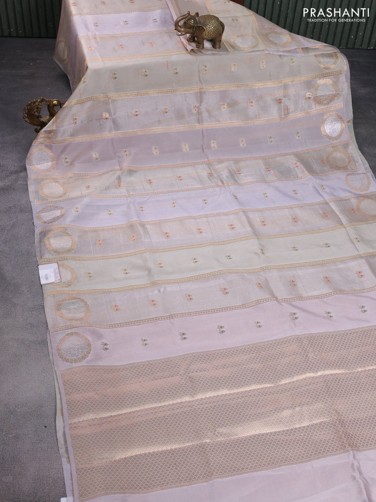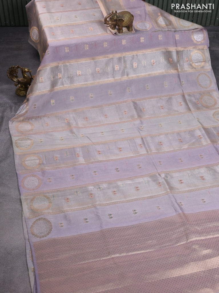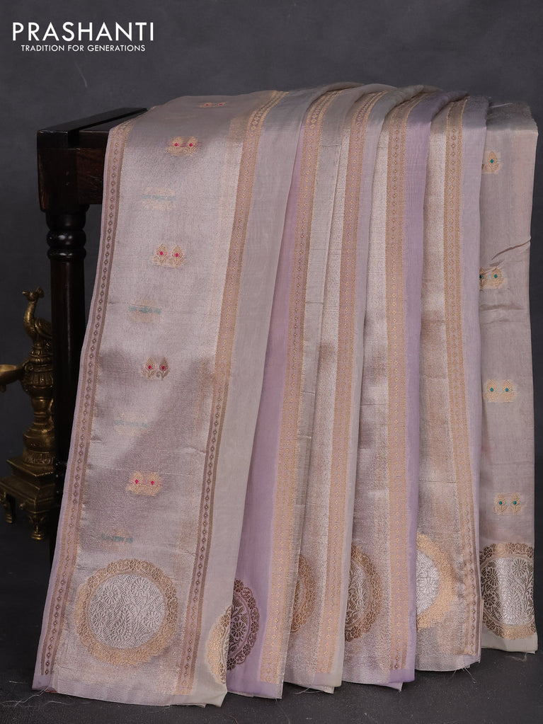 Banarasi tissue semi silk saree pastel grey and mild lavender with zari weaves & buttas and zari woven butta border