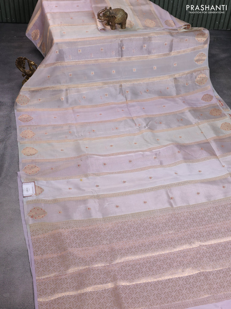 Banarasi tissue semi silk saree pastel shade and pastel lavender with allover zari weaves and zari woven floral border