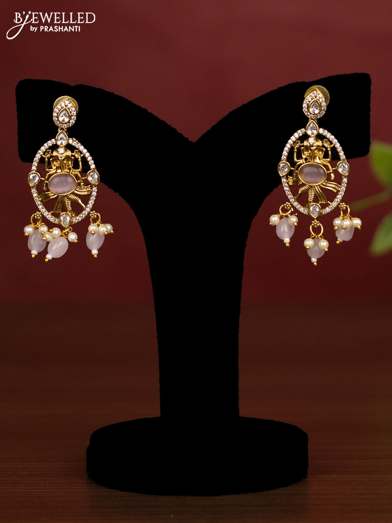 Beaded double layer baby pink necklace ganesha pendant with cz stones and pearl & beads hanging in victorian finish