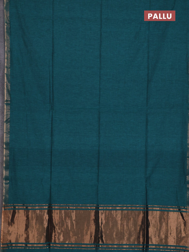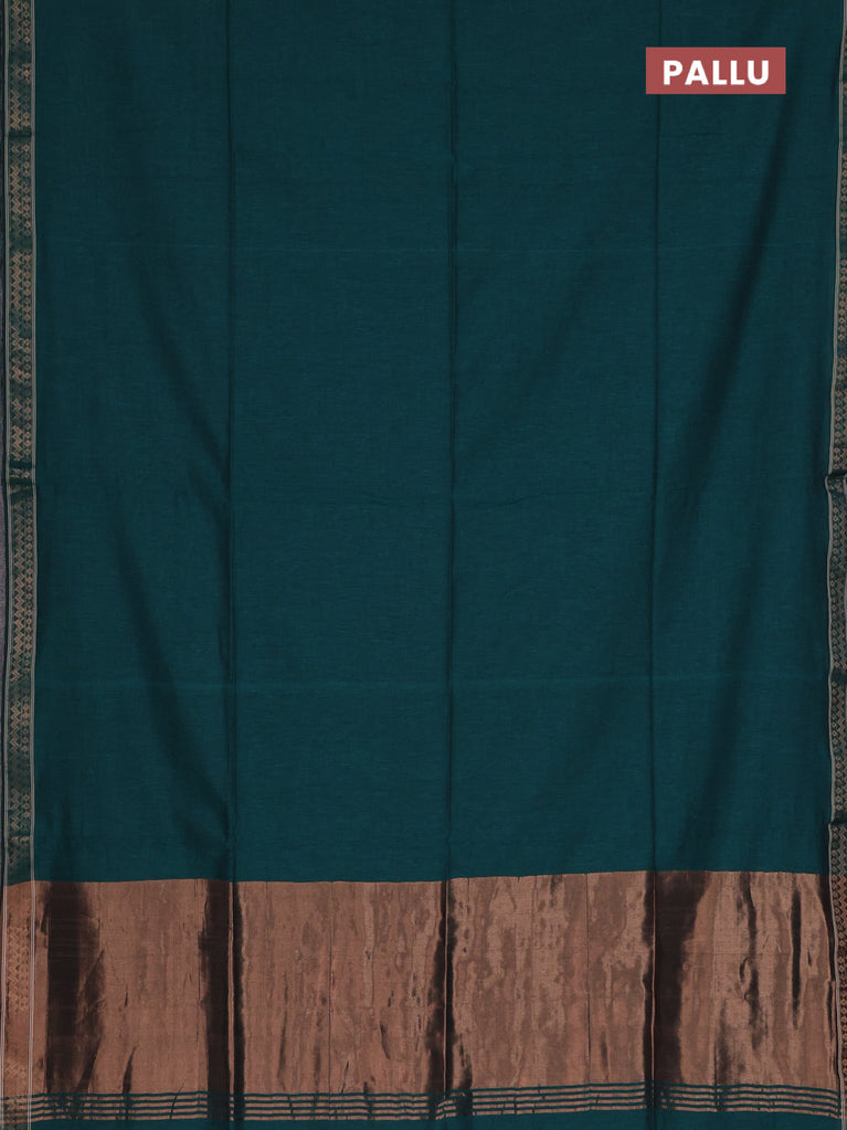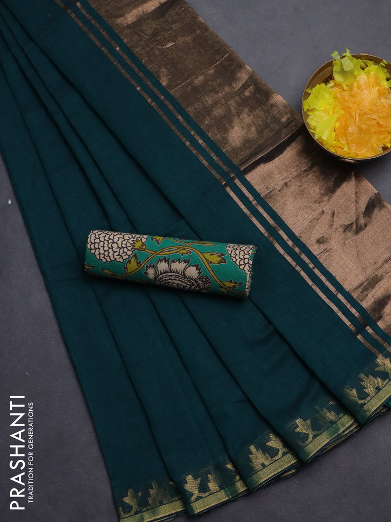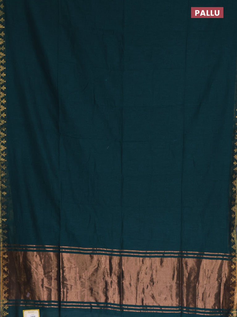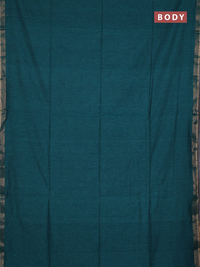 Bengal soft cotton saree peacock green and blue with plain body and zari woven border