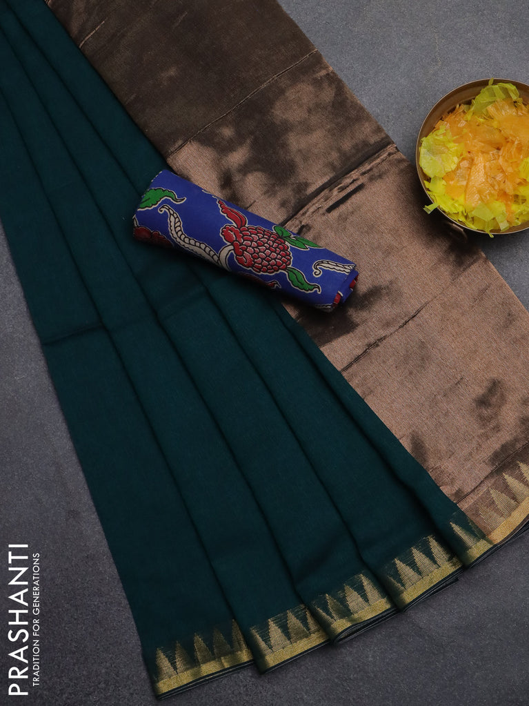 Bengal soft cotton saree peacock green with plain body and zari woven border