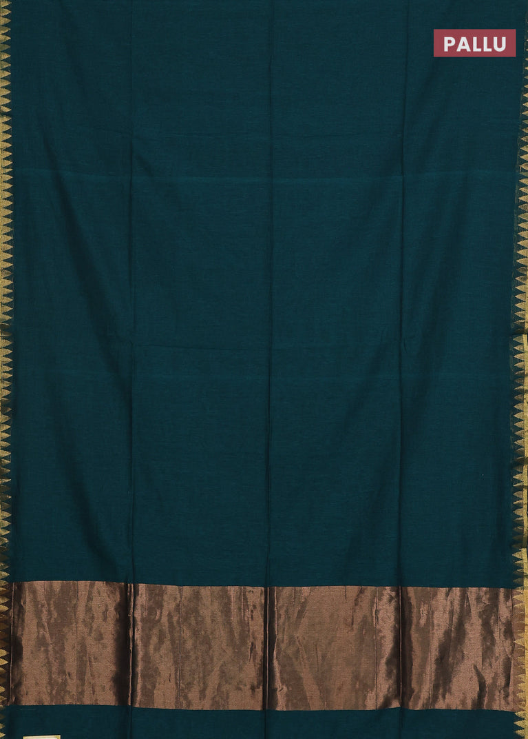Bengal soft cotton saree peacock green and maroon with plain body and zari woven border