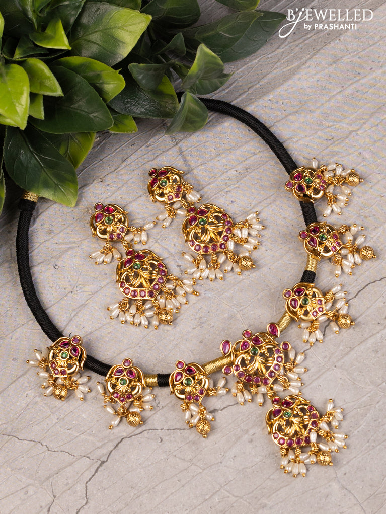 Black thread necklace with kemp & kundan stones and pearls