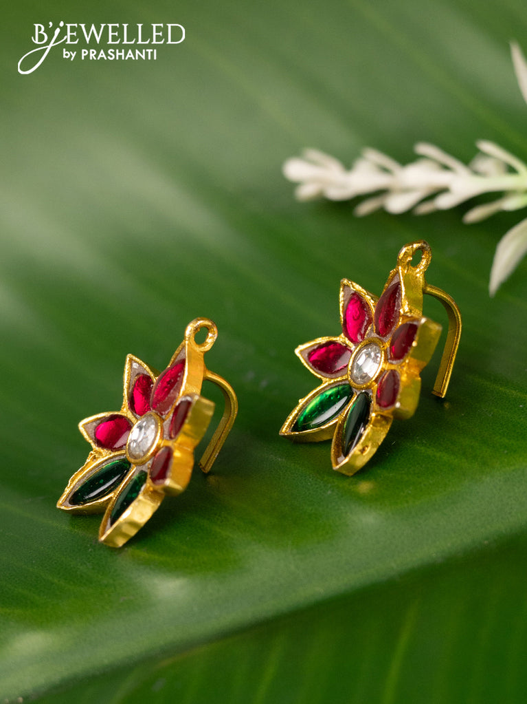 Bugadi earrings floral design with jadau kundan stones and pearl & beads hanging