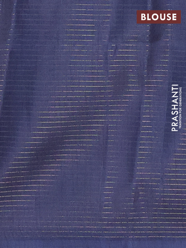 Chappa saree dark blue and beige with allover small zari checked pattern and floral digital printed pallu