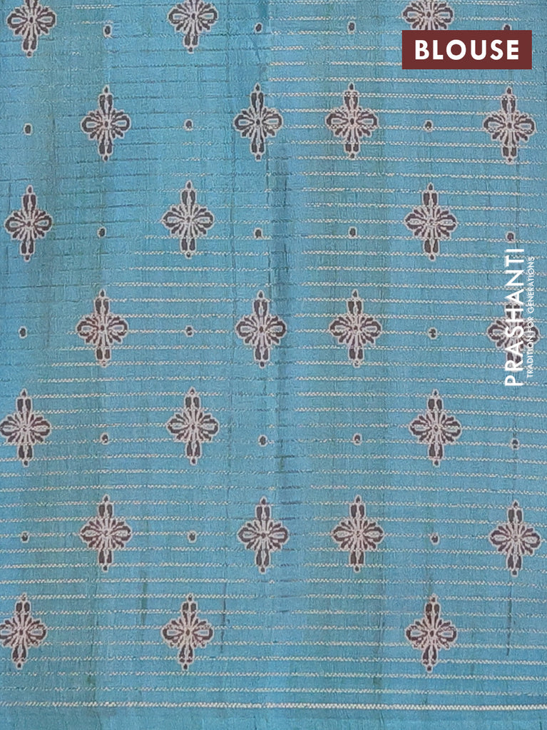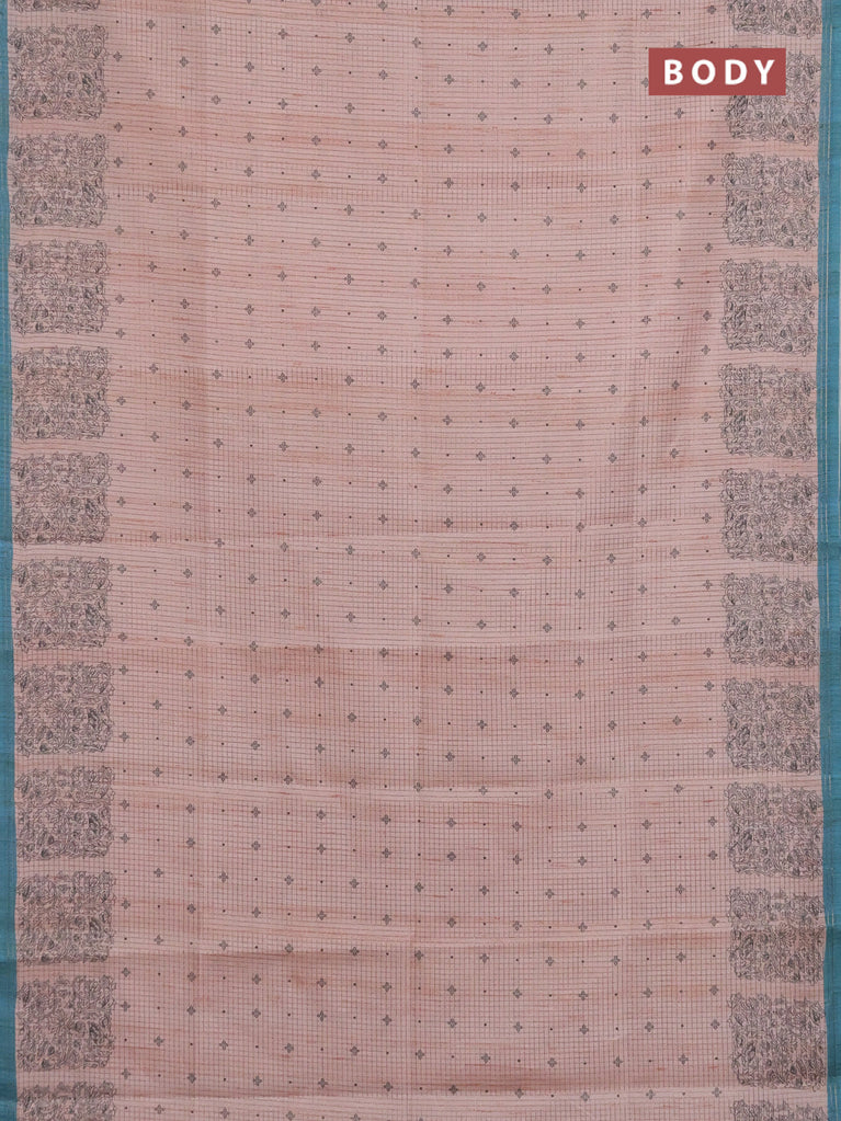 Chappa saree peach shade and teal blue with allover small zari checked pattern & butta prints and printed border