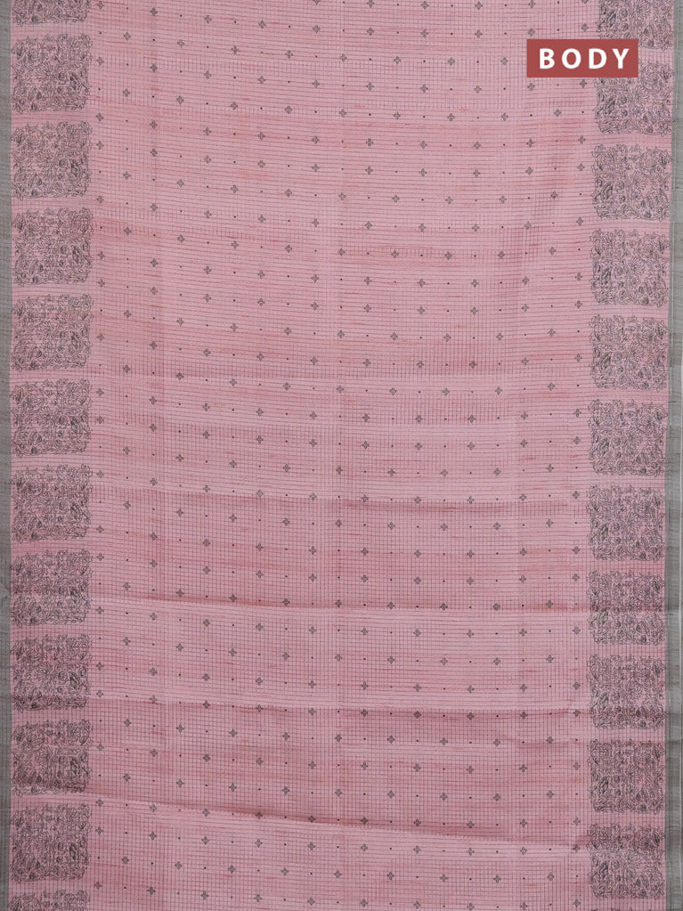 Chappa saree pink and grey with allover small zari checked pattern & prints and piping border