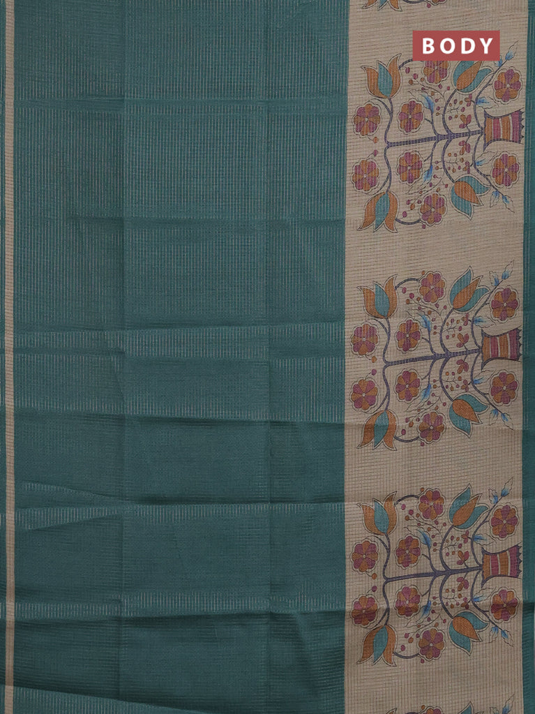 Chappa saree peacock green and beige with allover small zari checked pattern and floral digital printed pallu