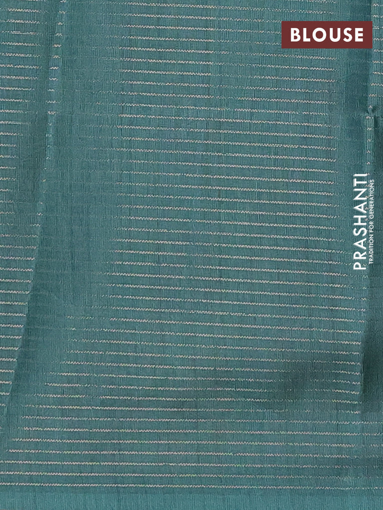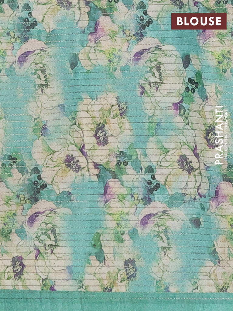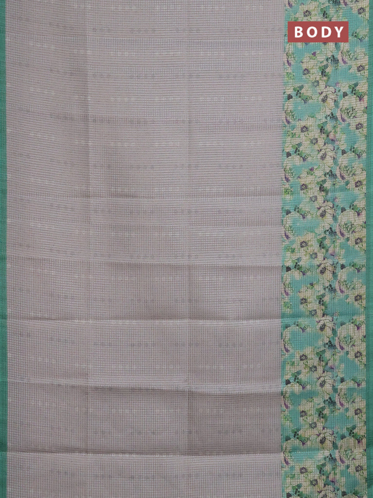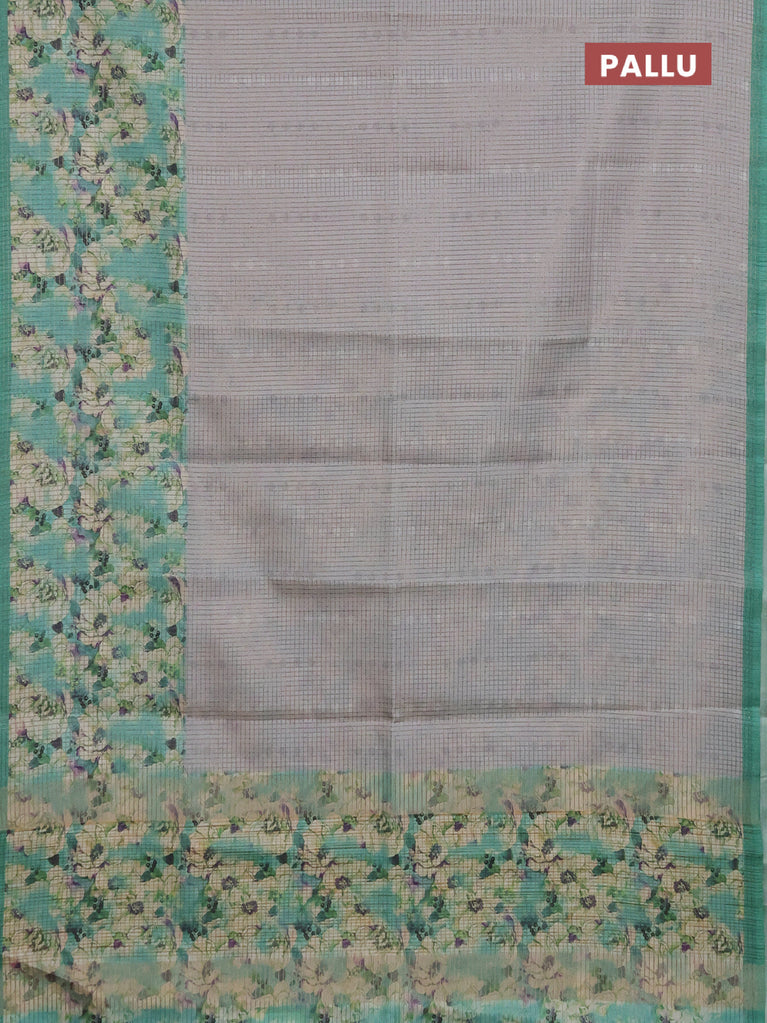 Chappa saree pastel grey and teal green with allover small zari checked pattern and floral digital printed pallu