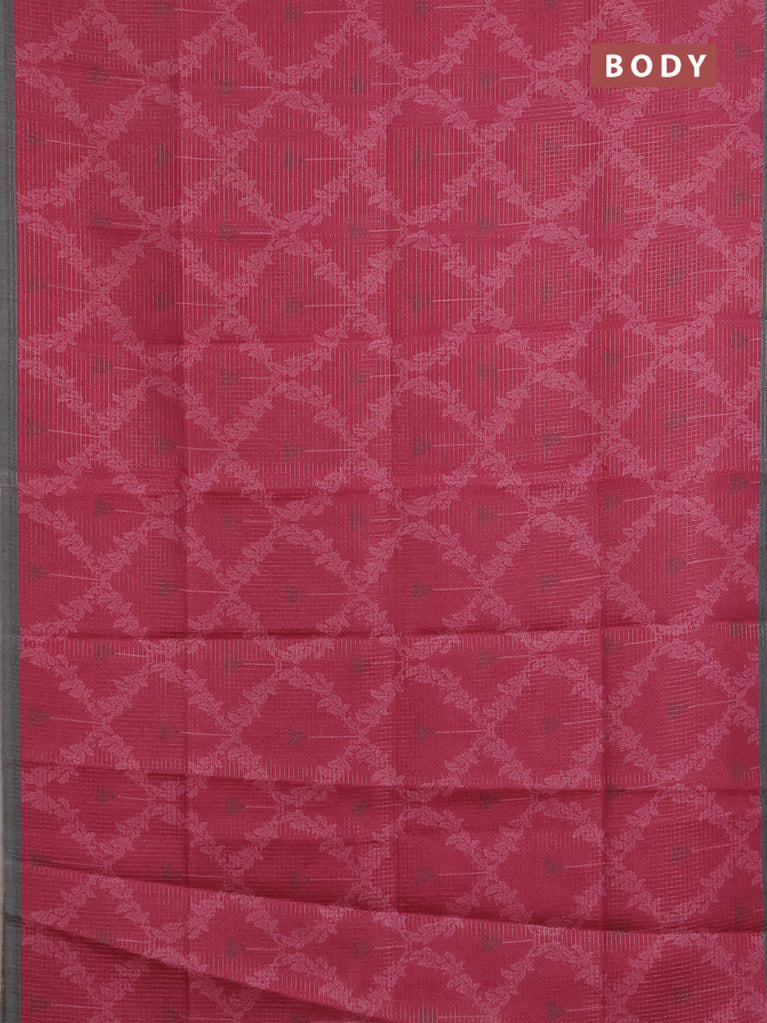 Chappa saree pastel grey and magenta pink with allover small zari checked pattern & butta prints and printed border