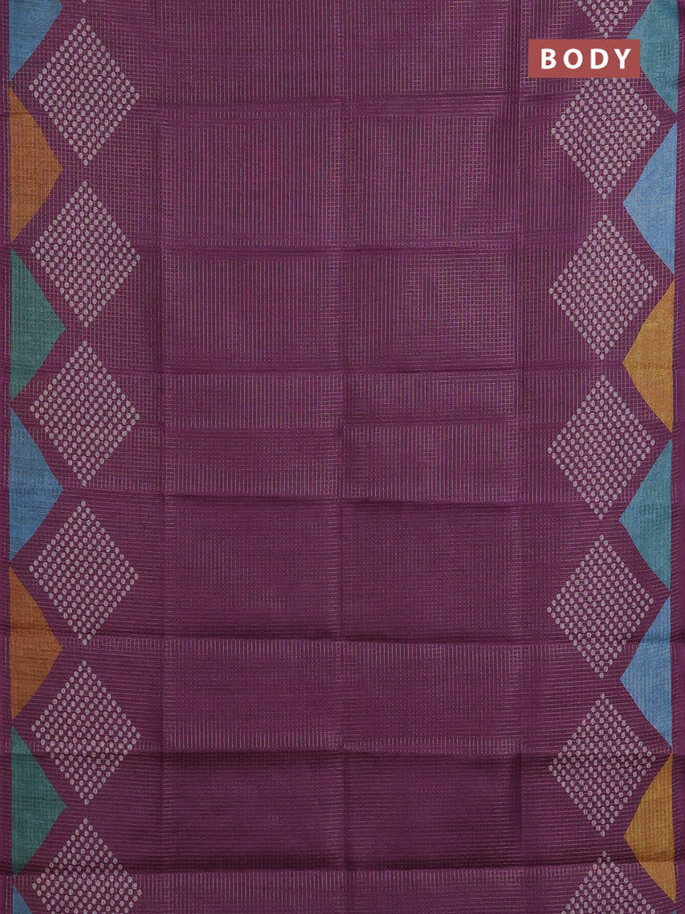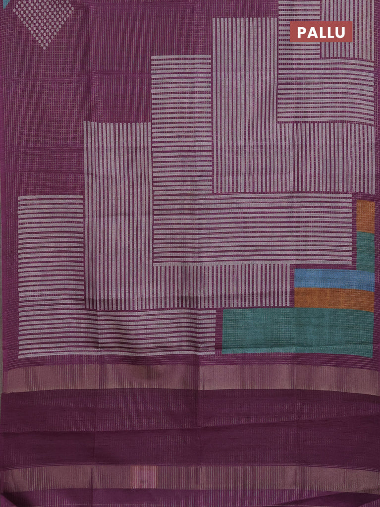 Chappa saree purple and green with allover small zari checked pattern and printed border