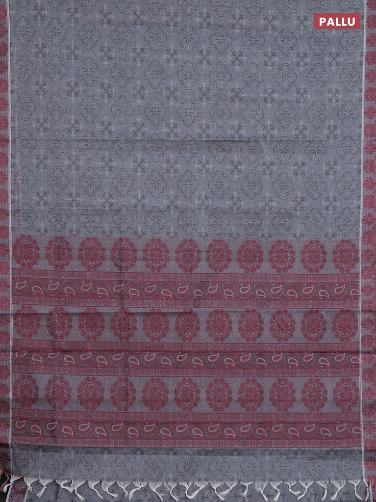 Coimbatore cotton saree grey and maroon with allover self emboss and thread woven border