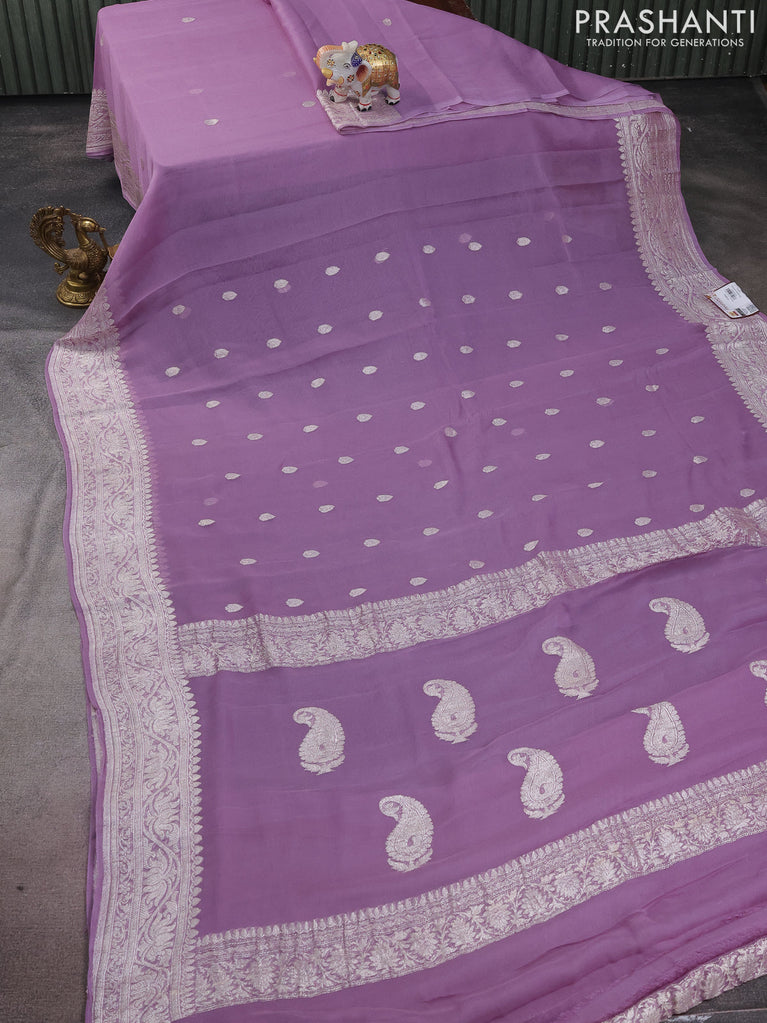 10 yards Poly cotton saree mauve pink and blue with plain body and rettapet zari woven border
