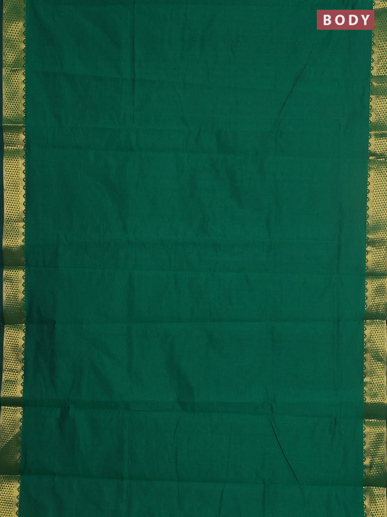 10 yards Poly cotton saree green and maroon with plain body and rettapet zari woven border