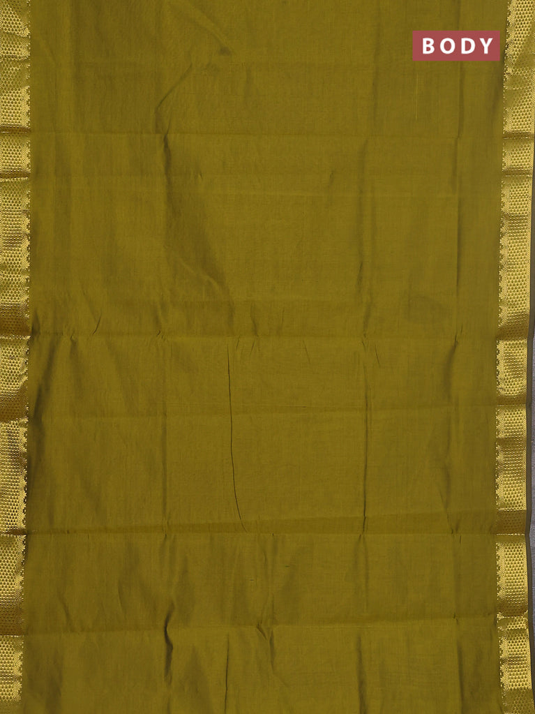 10 yards Poly cotton saree mehendi green and green with plain body and zari woven border