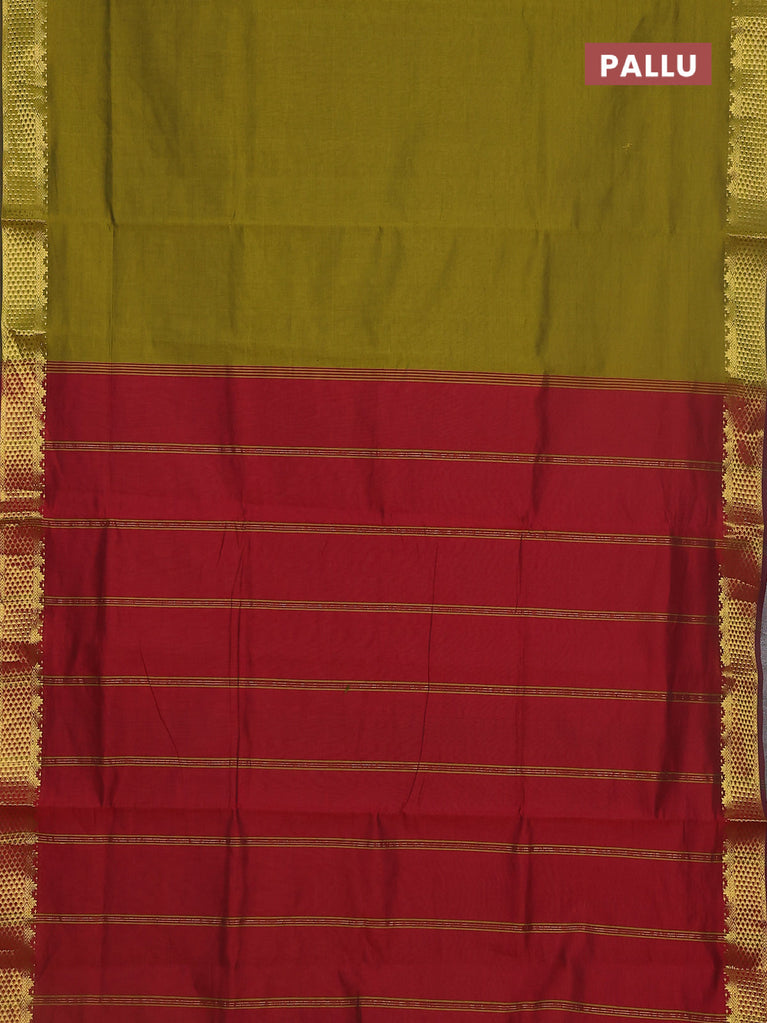 10 yards Poly cotton saree maroon and mehendi green with plain body and zari woven border