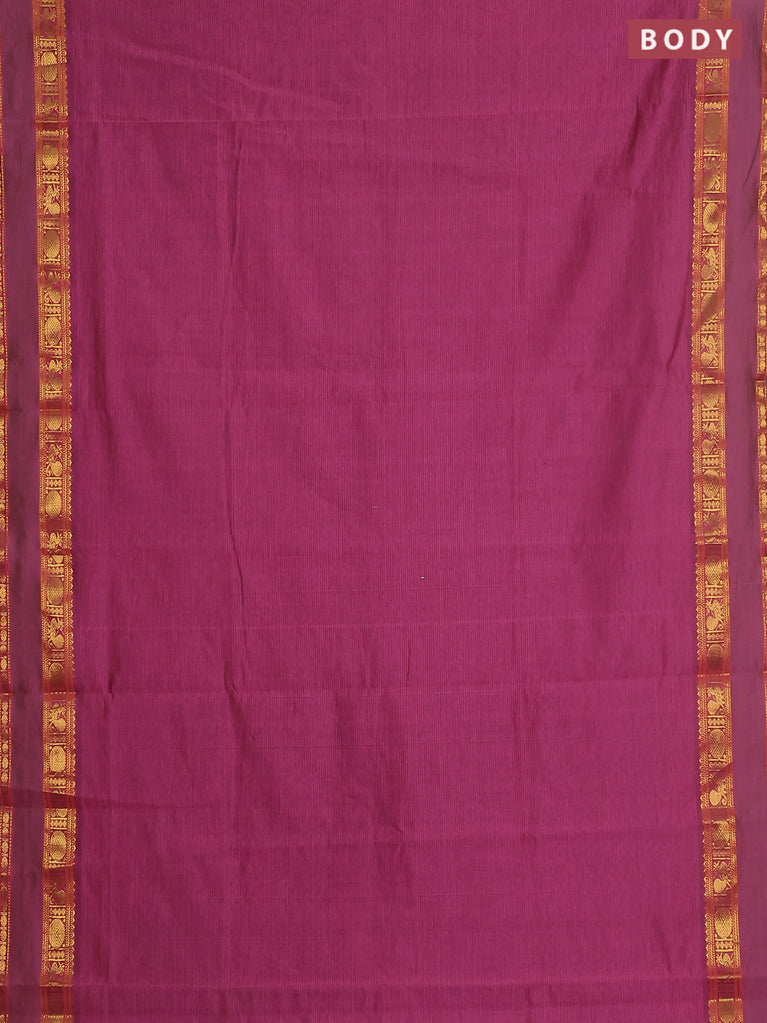 10 yards Poly cotton saree magenta pink and green with plain body and zari woven border