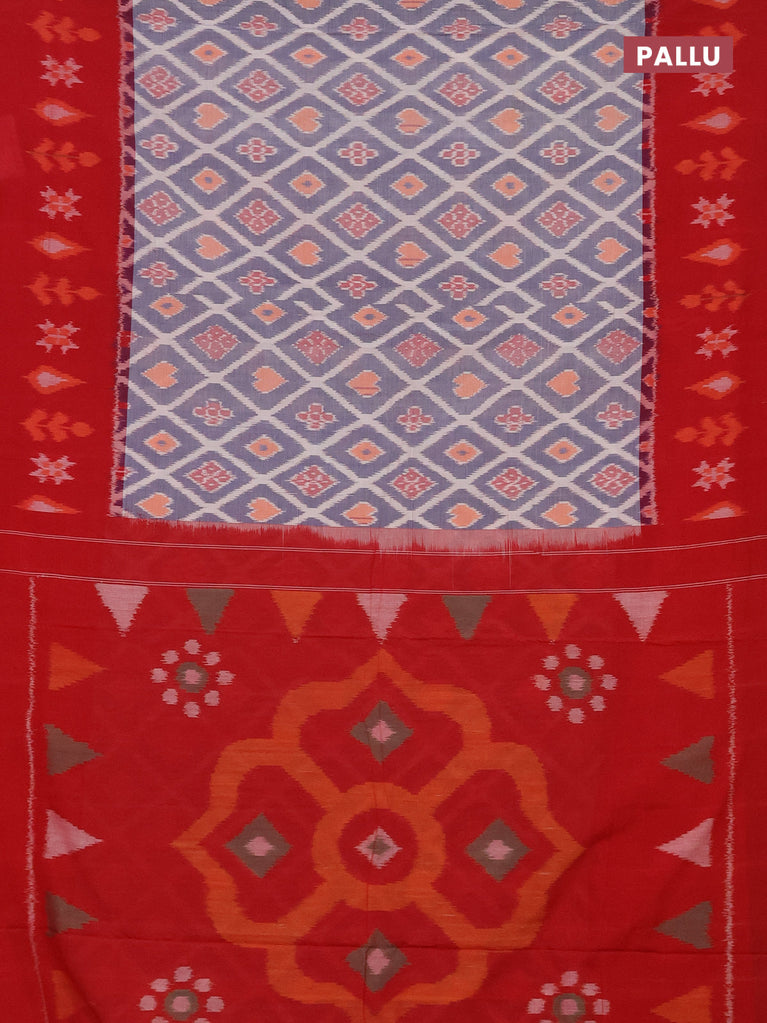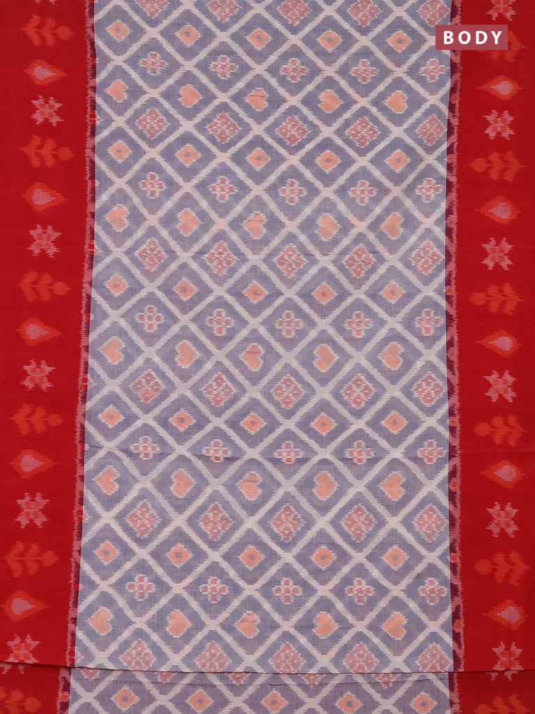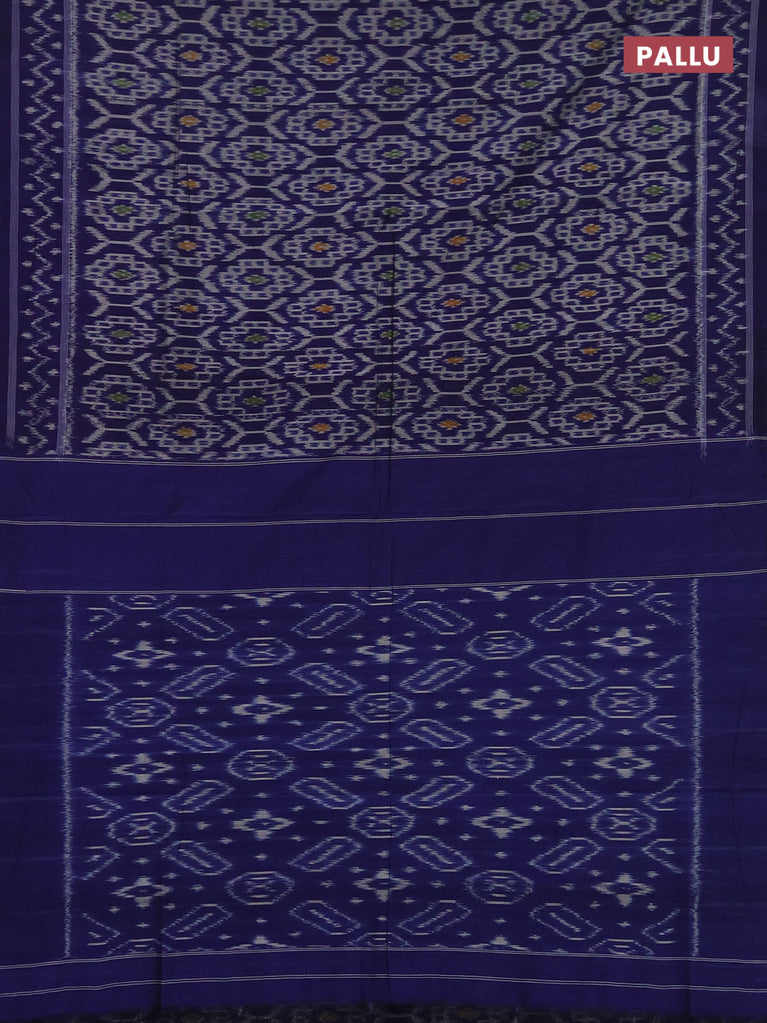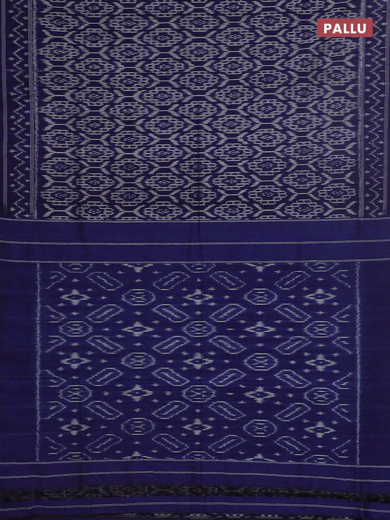 Ikat cotton saree bluish grey and blue with allover ikat butta weaves and temple design simple border