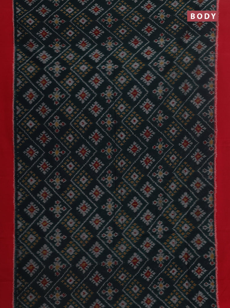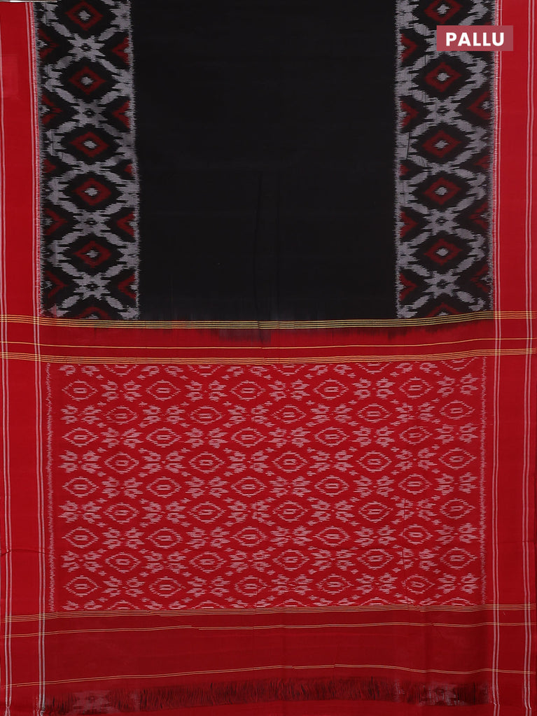 Ikat cotton saree black and red with plain body and rettapet zari woven border
