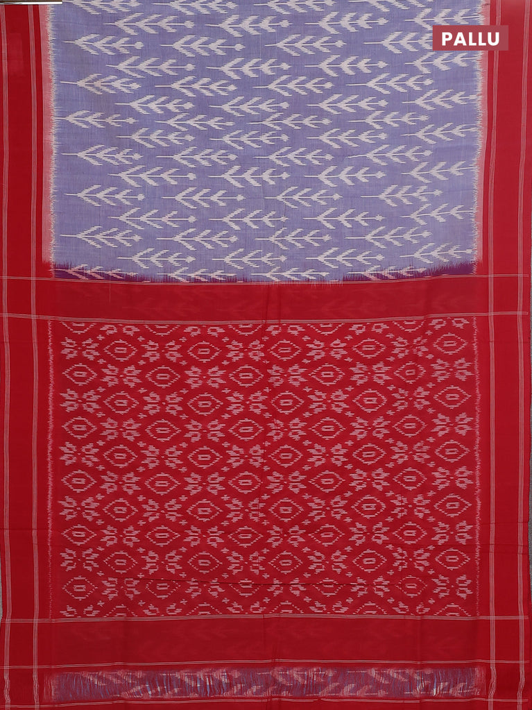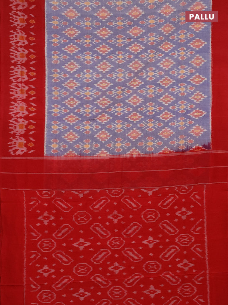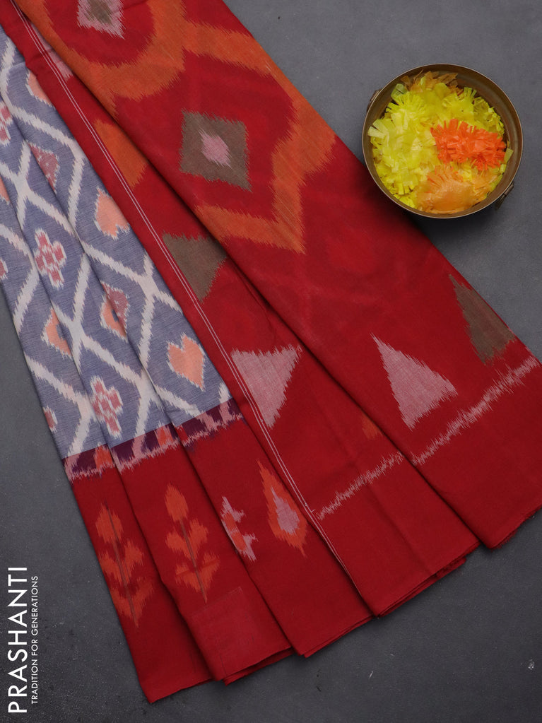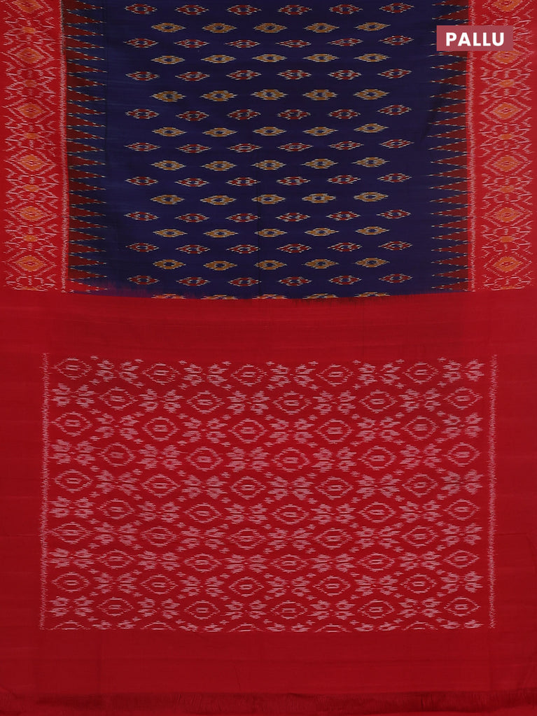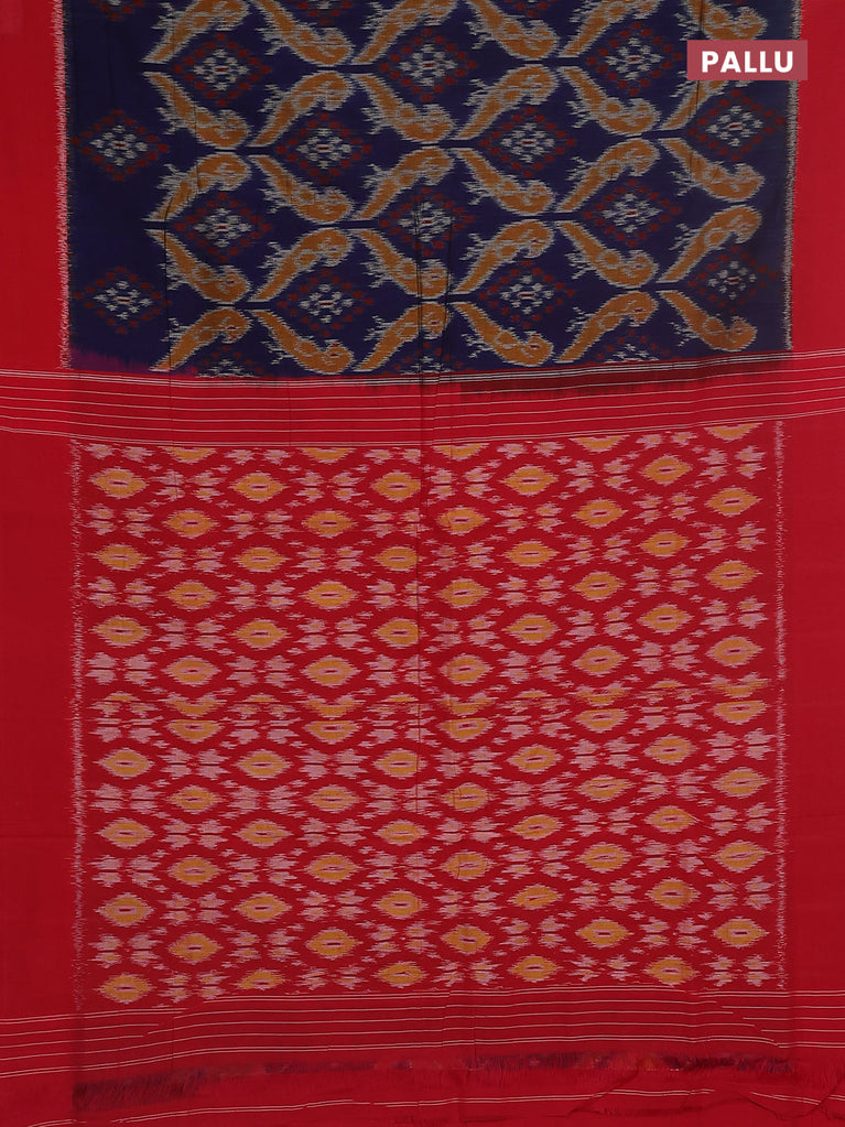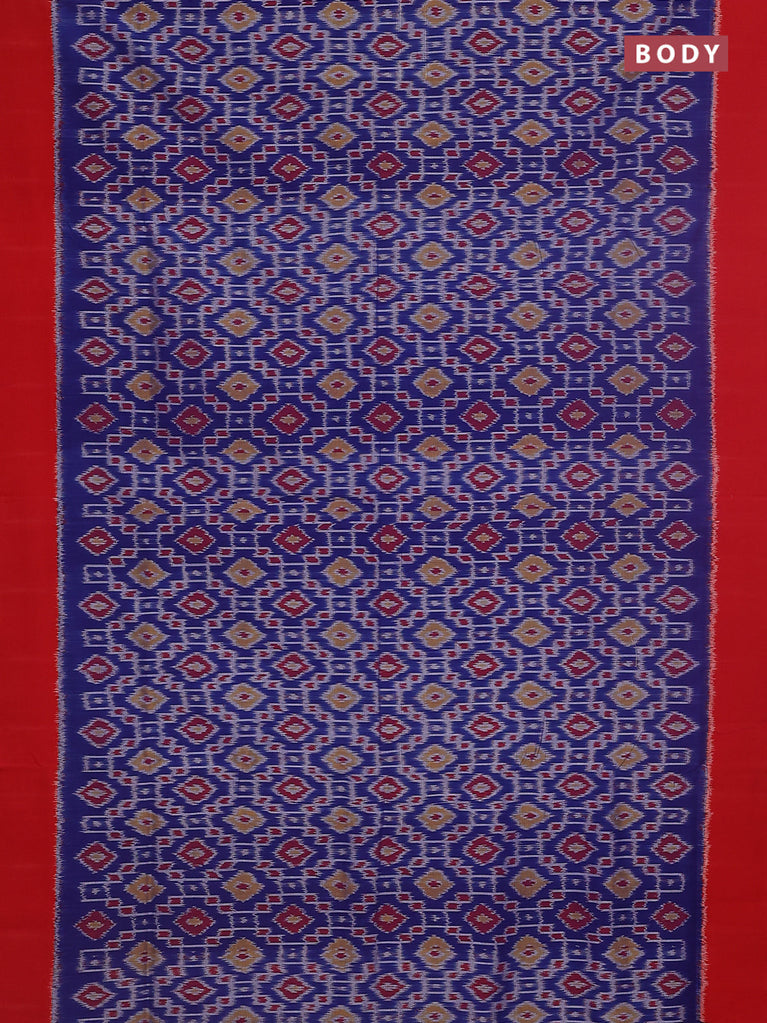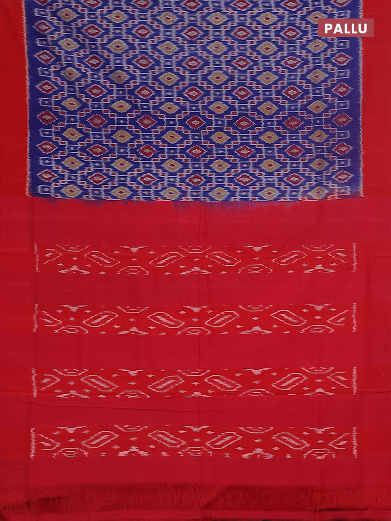 Ikat cotton saree blue and red with allover ikat weaves and long ikat style border