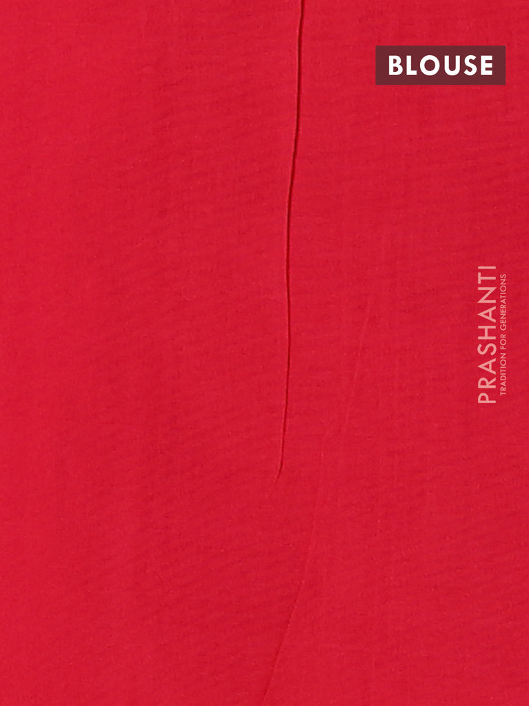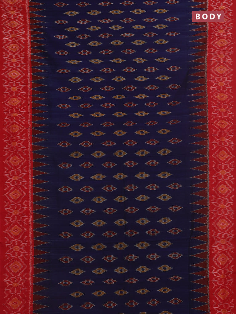 Ikat cotton saree blue and red with allover ikat butta weaves and temple design ikat style border