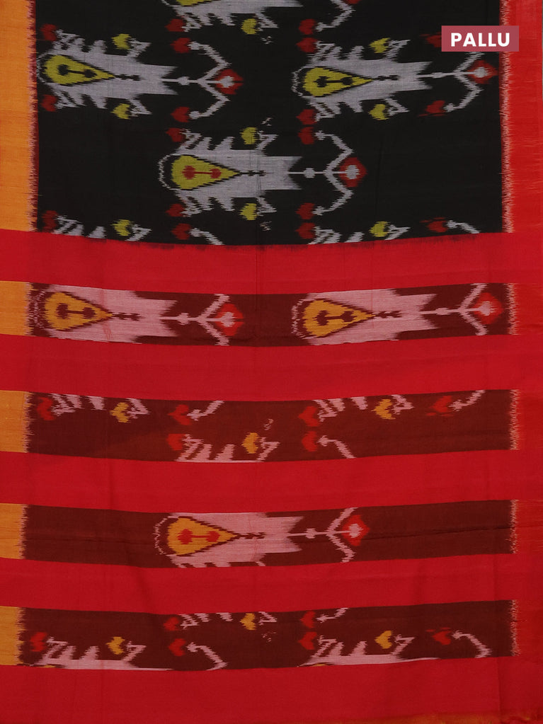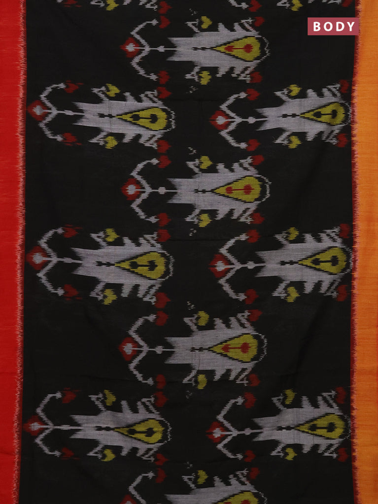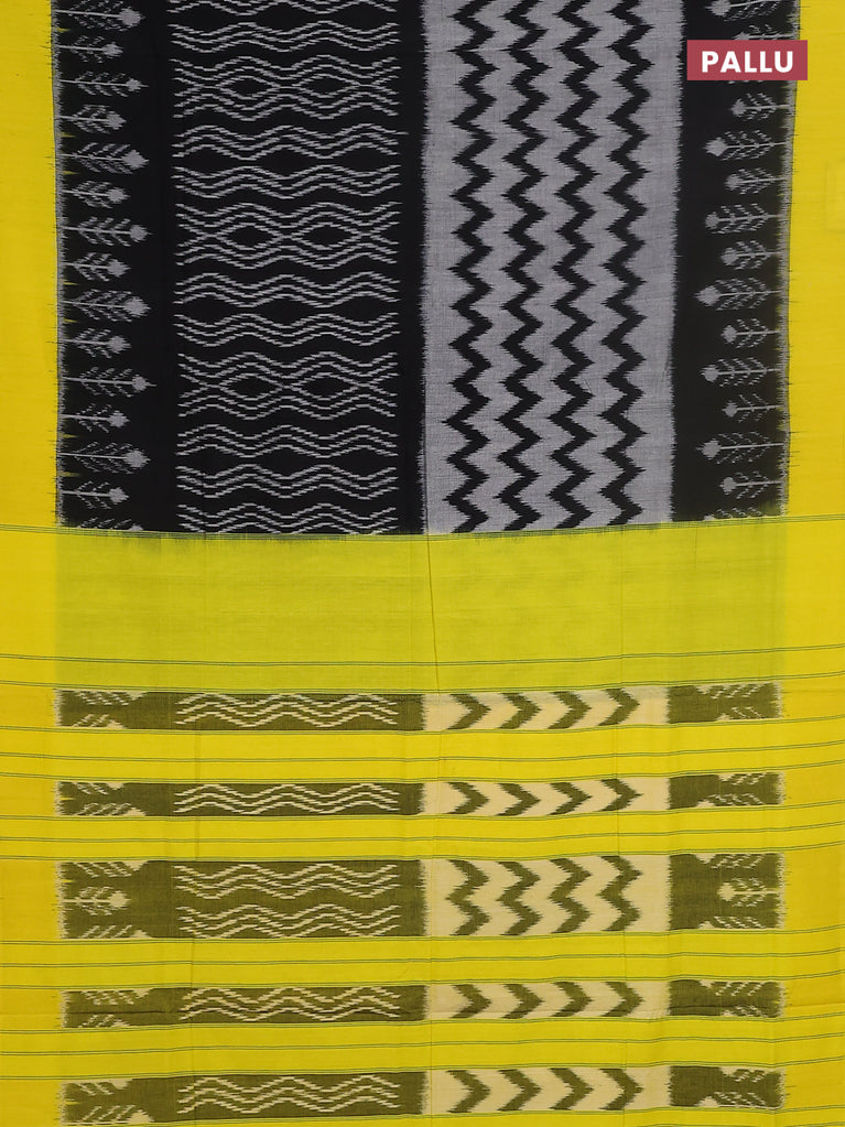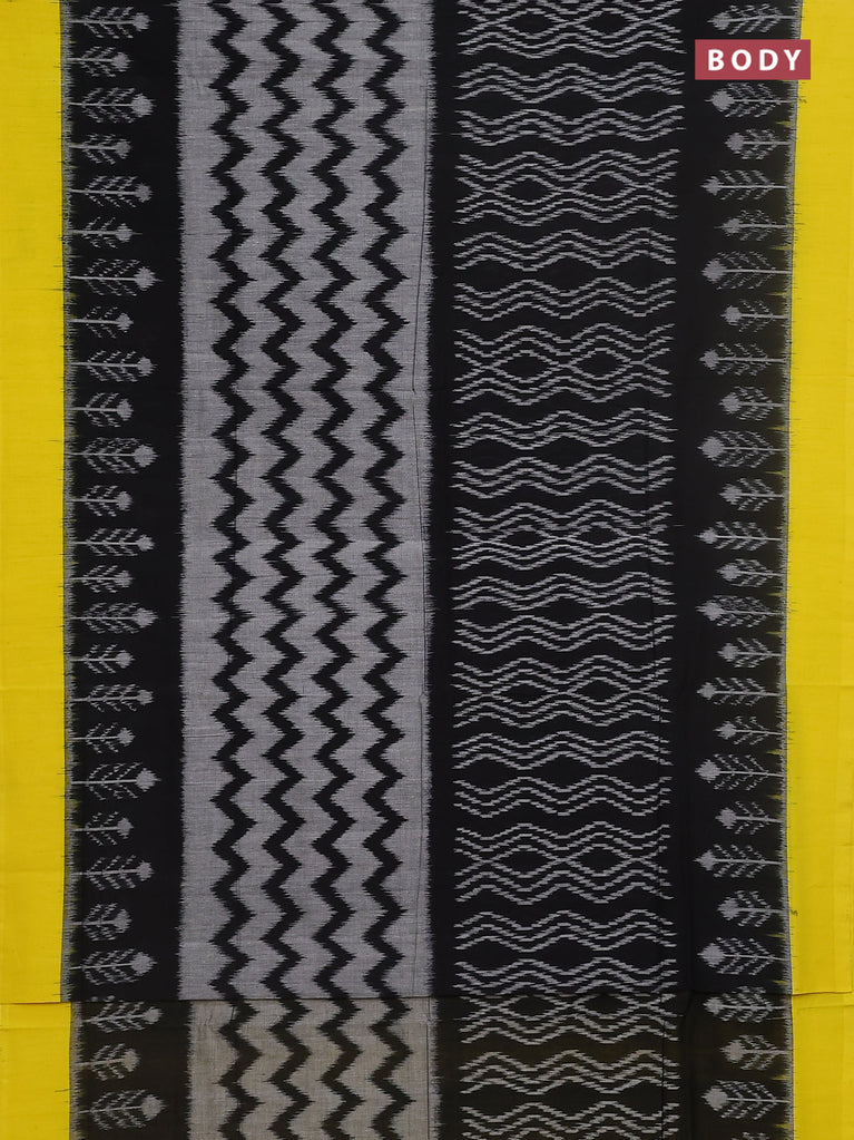 Ikat cotton saree black and yellow with allover ikat weaves and simple border