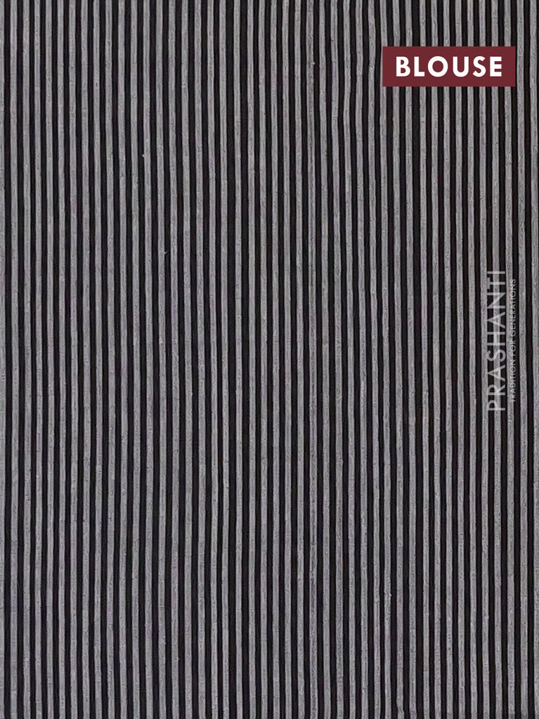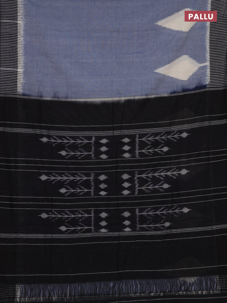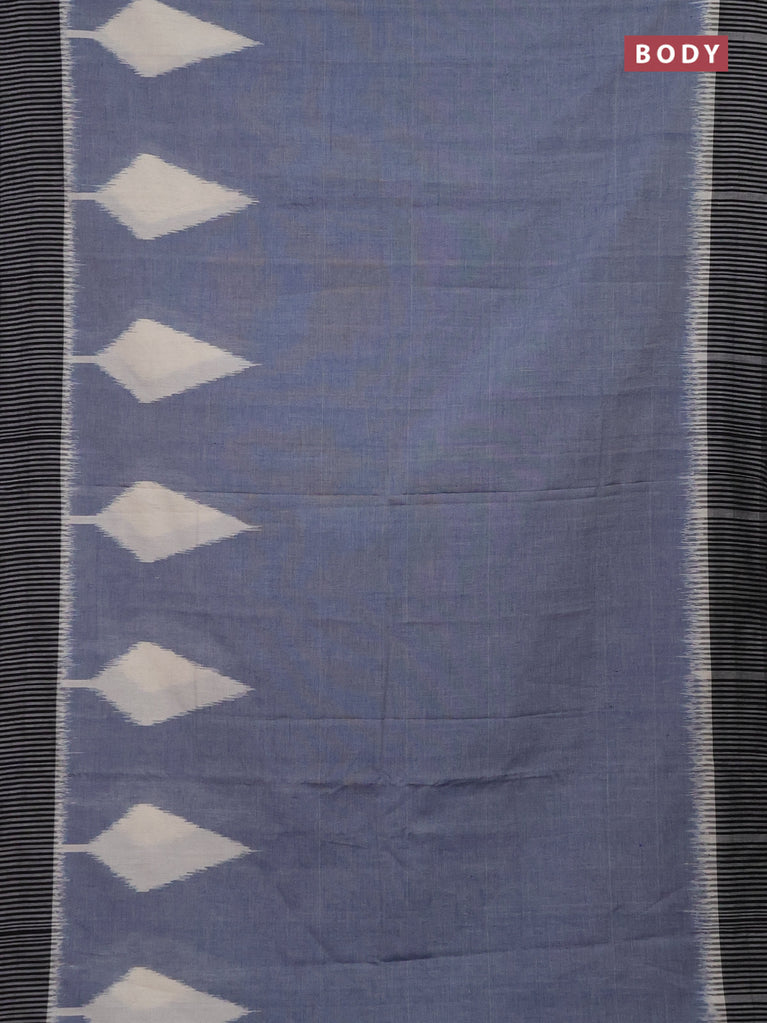 Ikat cotton saree bluish grey and black with plain body and simple border