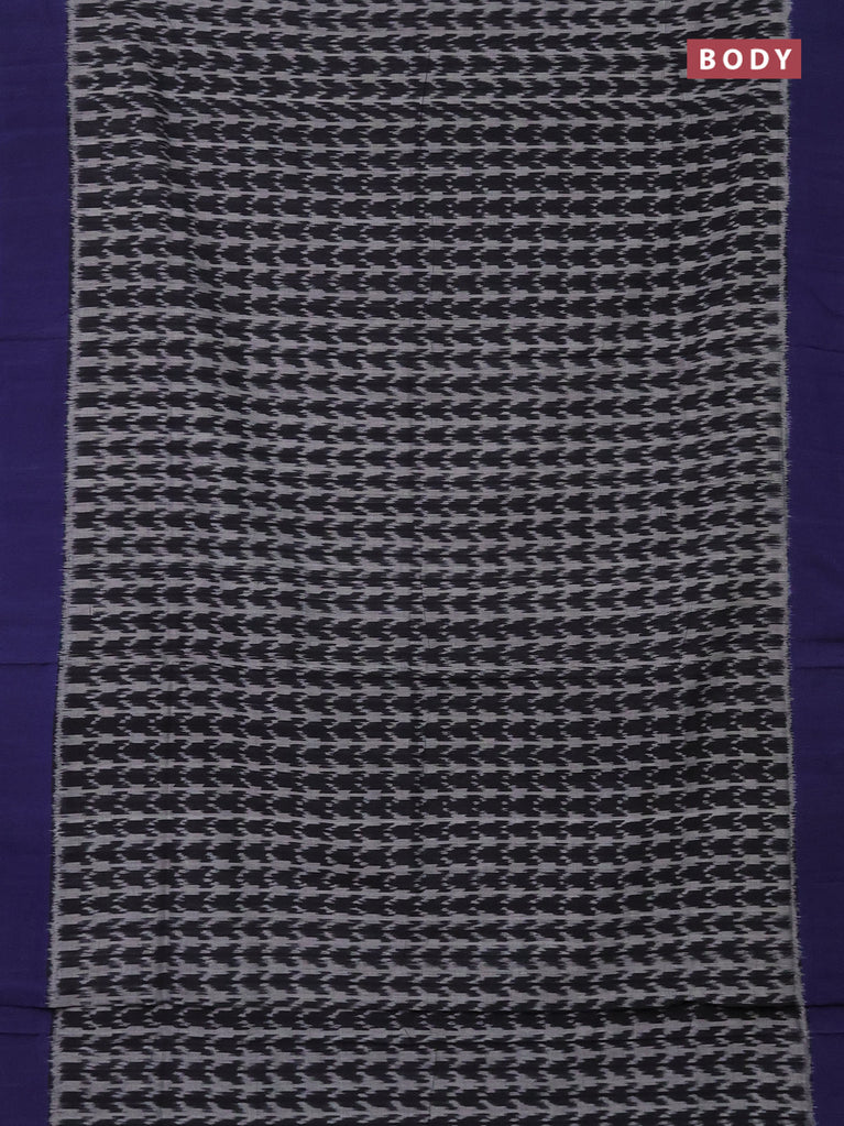Ikat cotton saree black grey and blue with allover ikat weaves and simple border